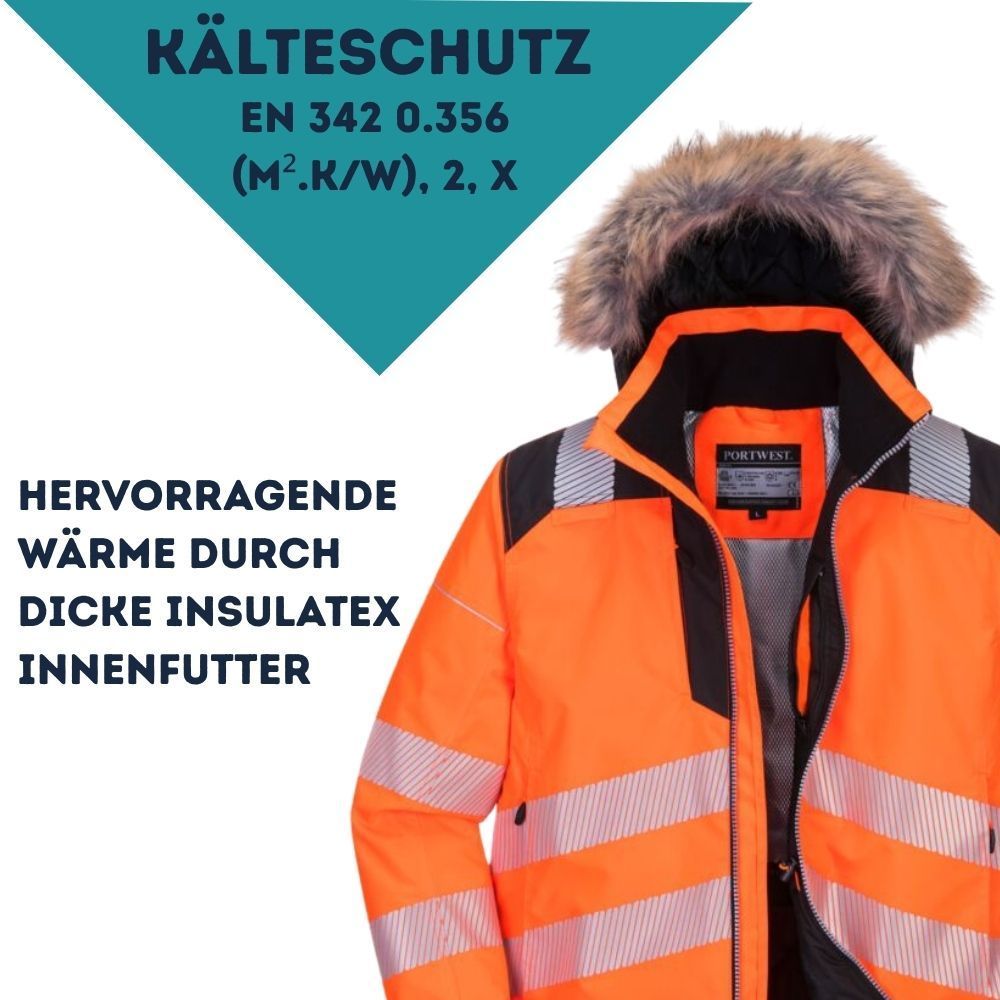 Hi-Vis Winterparka Arbeitsjacke EN20471 Warnschutzjacke reflektierend Portwest PW369