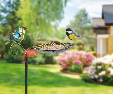 • Vogeltränke auf Stab Gusseisen mit Kolibri Deko Schale für Garten Terrasse Balkon