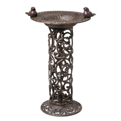 • Moritz Vogeltränke 77 cm hoch braun Gusseisen massive Wildvogeltränke für Garten
