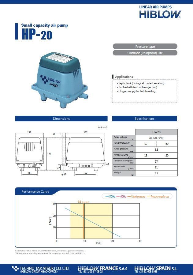 • HIBLOW HP-20 Belüftungsset Luftpumpe Sauerstoff Koiteich Gartenteich
