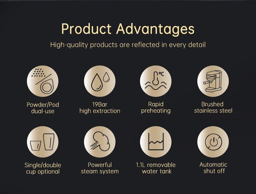 HiBREW H11 1450W Kaffeemaschine, 19 Bar halbautomatische Espressomaschine