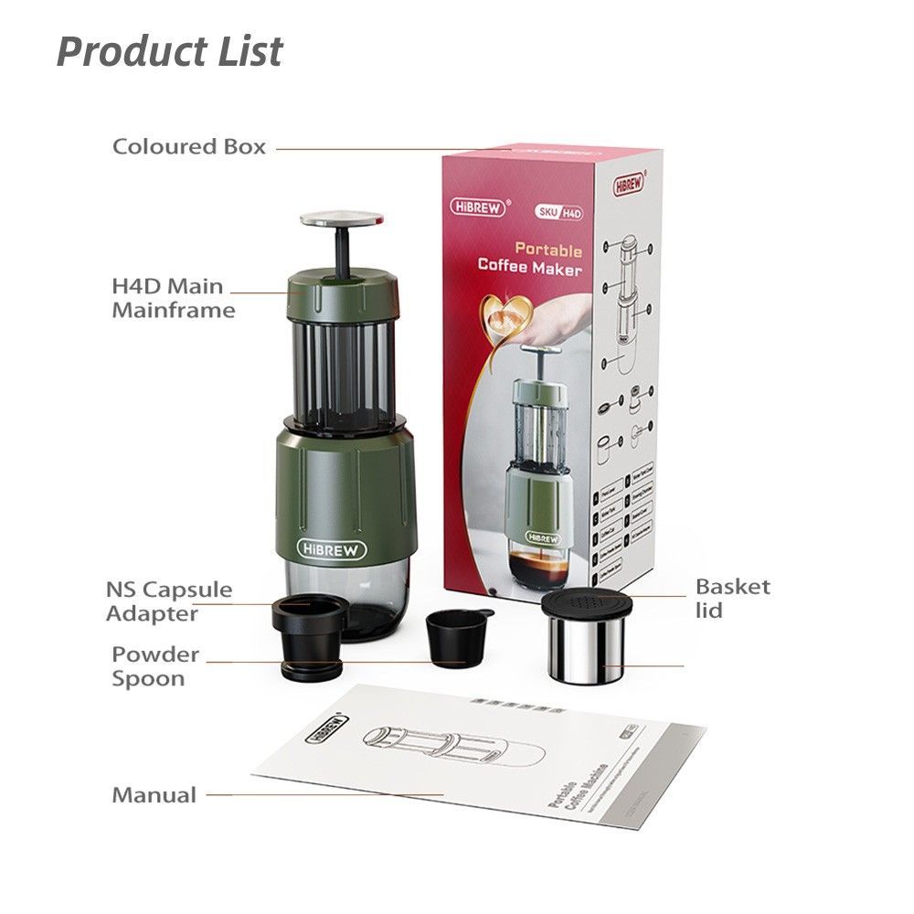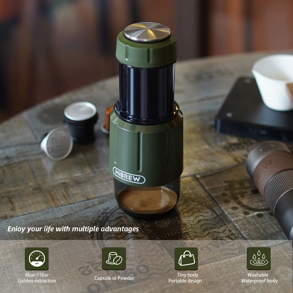 HiBREW H4D 2-in-1 Tragbare Espressomaschine, Manuelle Handpresse, Grün