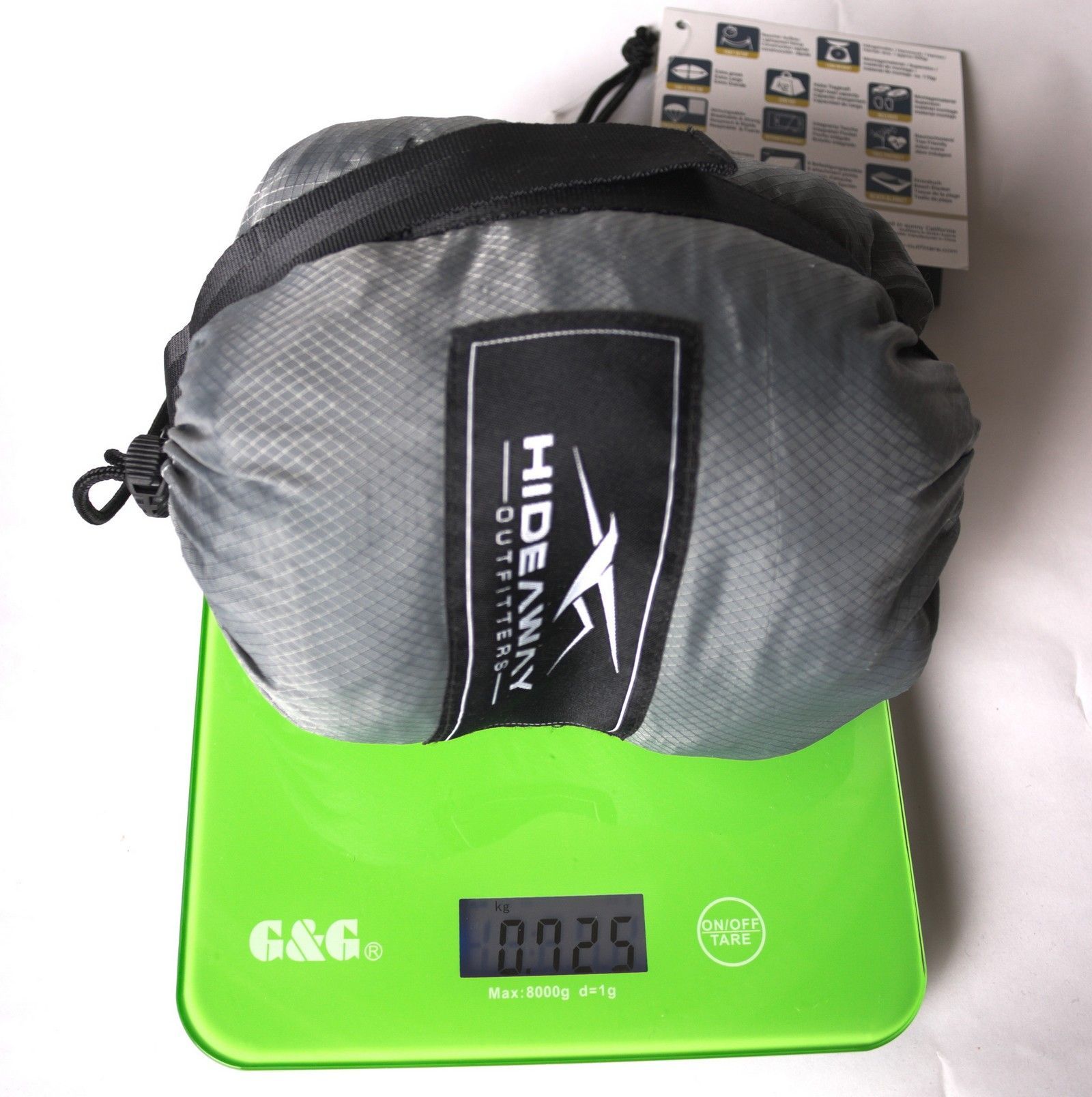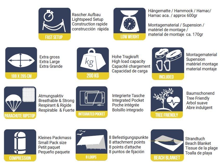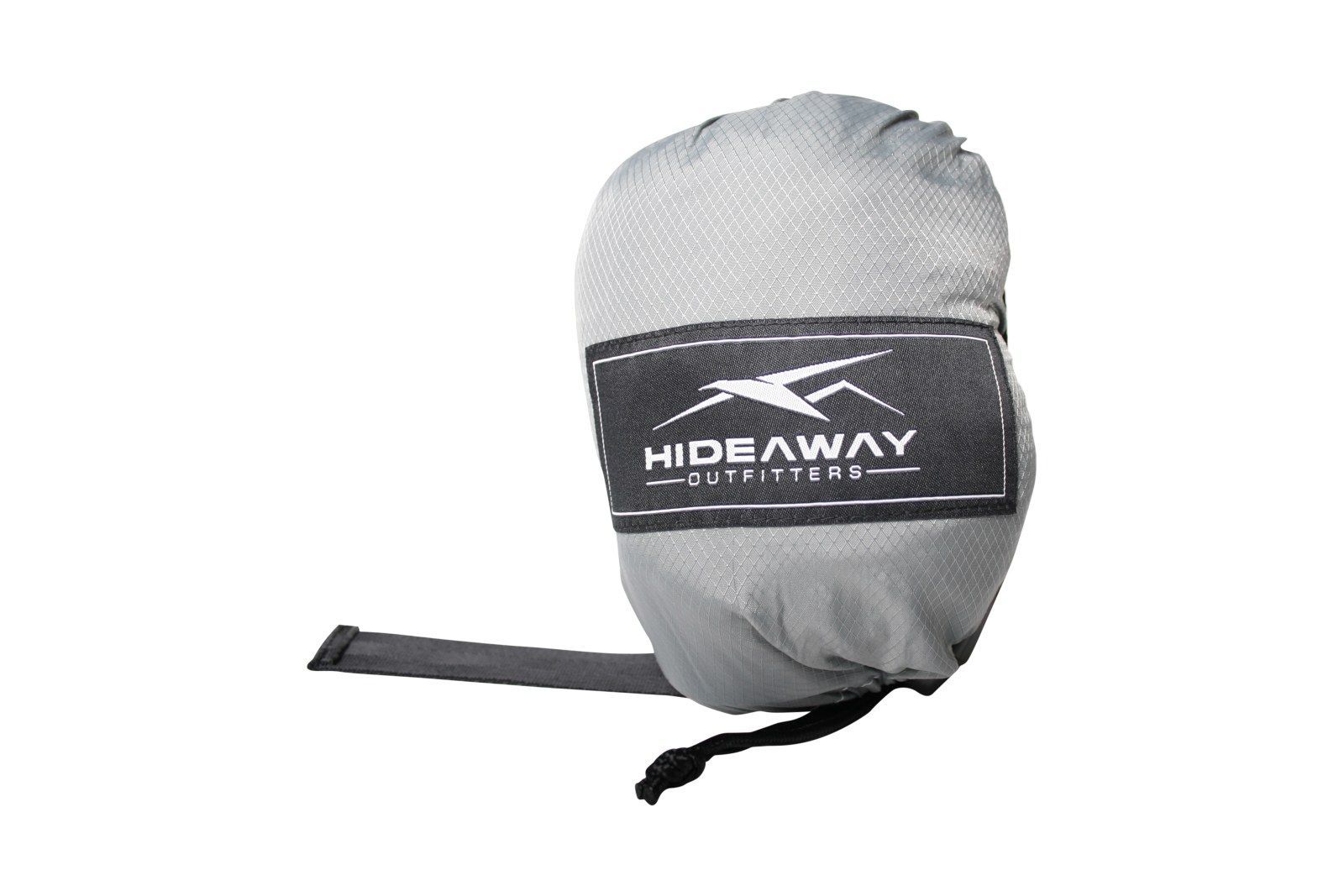 <p>Die graue Doppelhängematte aus taffeta ripstop Nylon ist leicht, robust und kompakt. Montagegurte für die baumschonende Befestigung sind inkludiert. Durch das handliche Packmass passt die Hideaway Campinghängematte in jeden Rucksack und ist ideal für Reisen und alle outdoor Aktivitäten.< p&