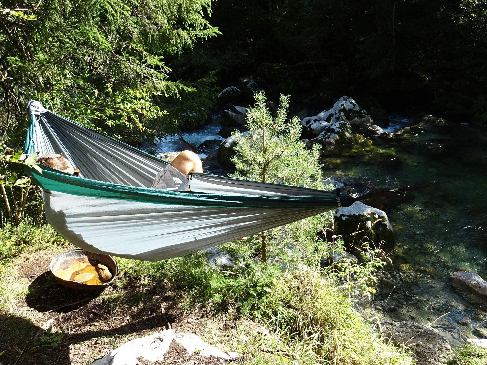 Hideaway Outfitters Camper Diamond 3 Doppel Hängematte Grau mit grünem Rand ink