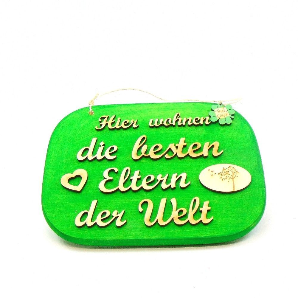 Hier wohnen die Besten Eltern der Welt, Ahorn Brett farbig, Geschenk Individuell