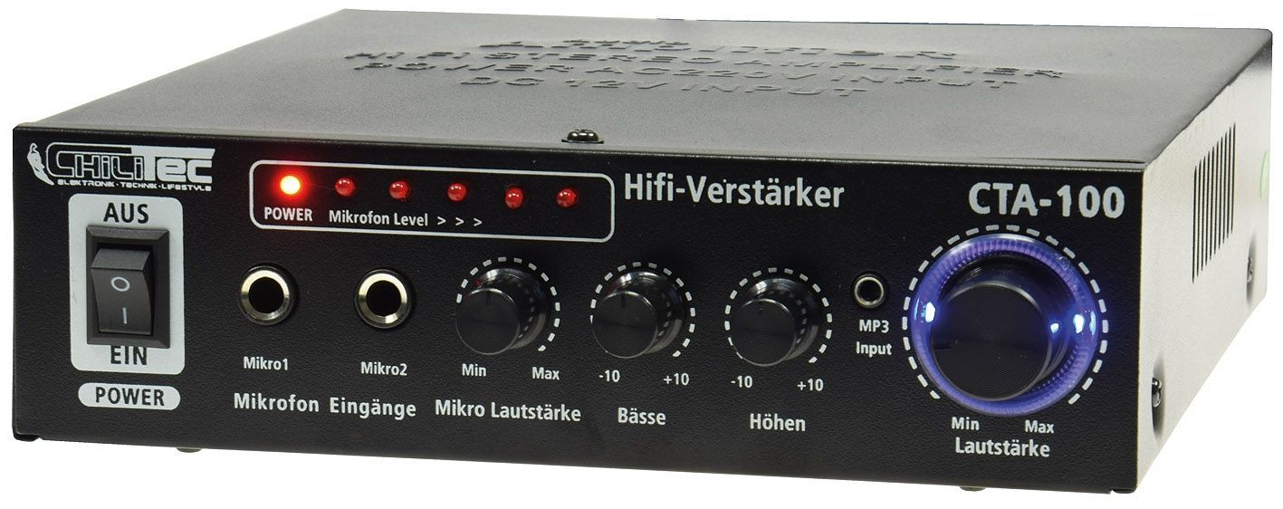 ChiliTec HiFi-Verstärker "CTA-100" 100W, schwarz 1x Line In, Betrieb 12V o. 230V