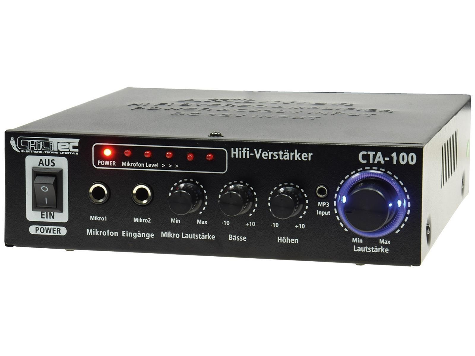 ChiliTec HiFi-Verstärker "CTA-100" 100W, schwarz1x Line In, Betrieb 12V o. 230V
