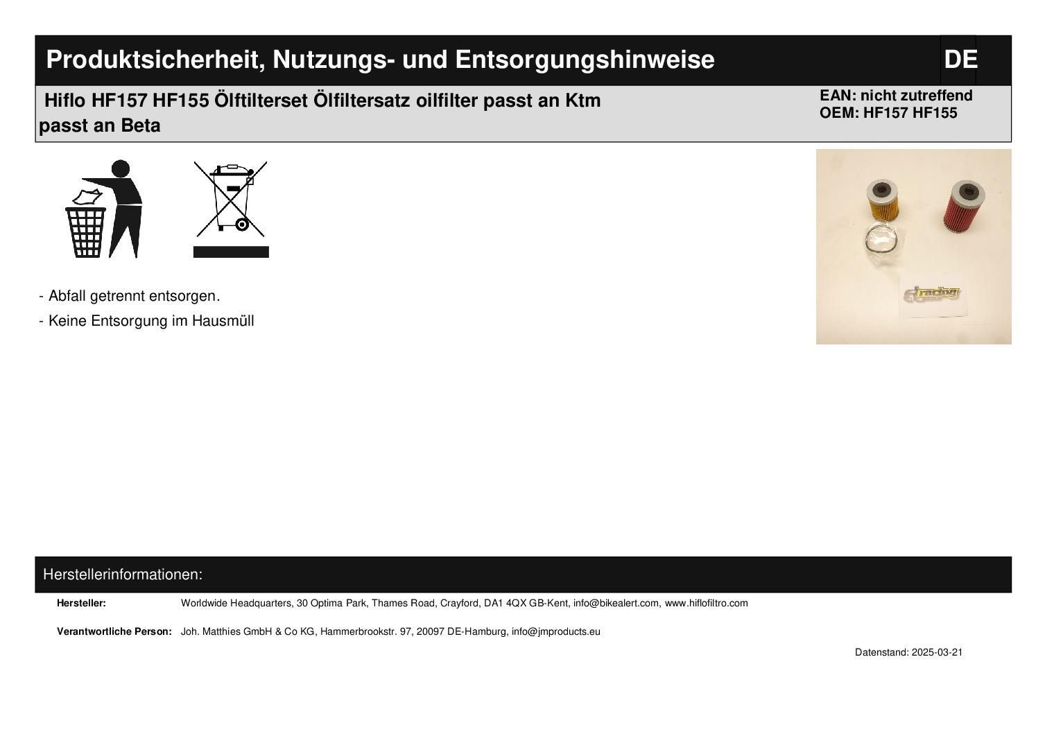Hiflo HF157 HF155 ?lftilterset ?lfiltersatz oilfilter passt an Ktm passt an Beta