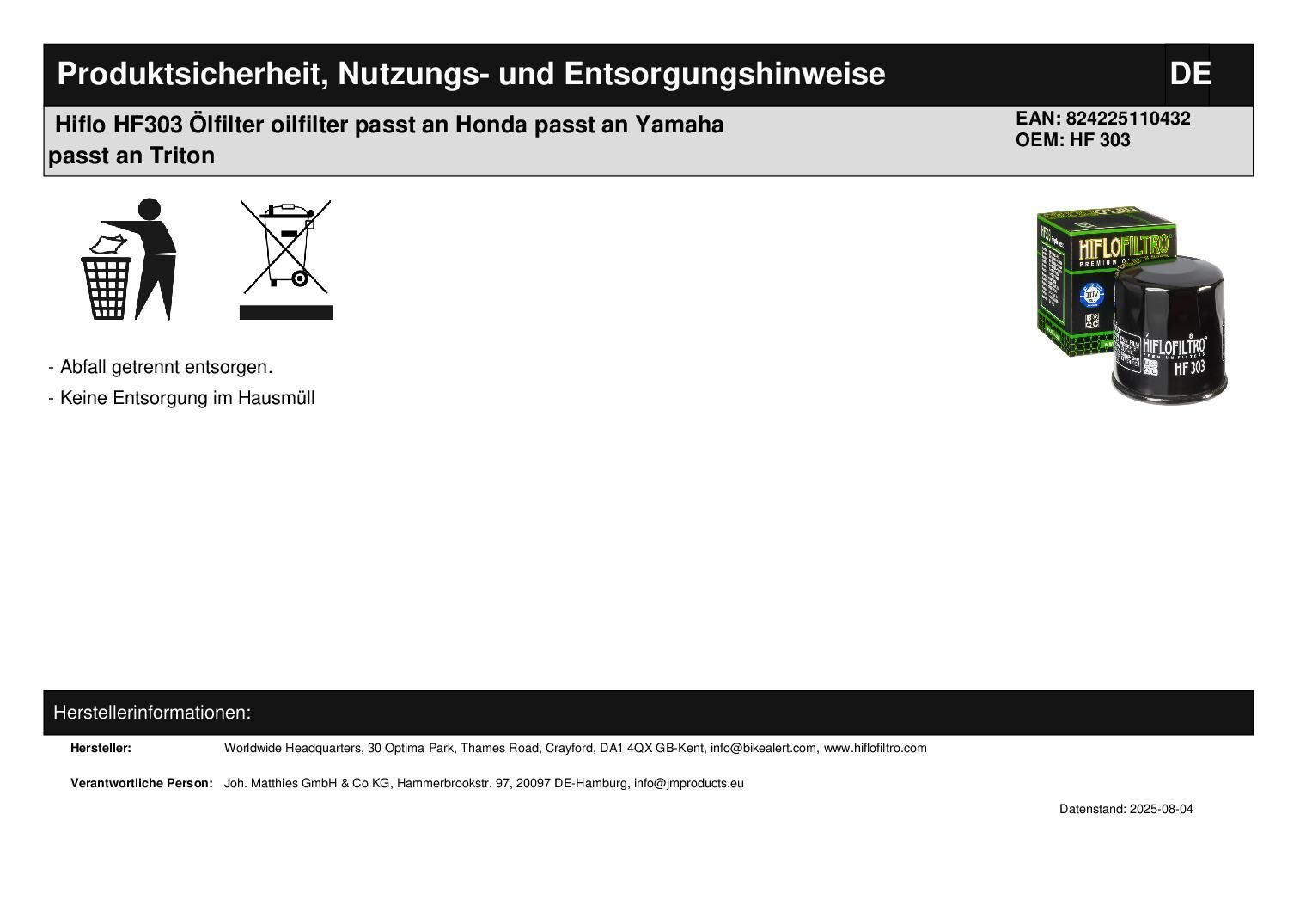 Hiflo HF303 Ölfilter oilfilter passt an Honda passt an Yamaha passt an Triton