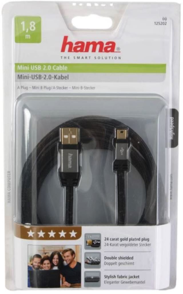 Hama High-Speed Mini-USB 2.0 Kabel 1,8m 24k-vergoldet Ferrit Gewebe