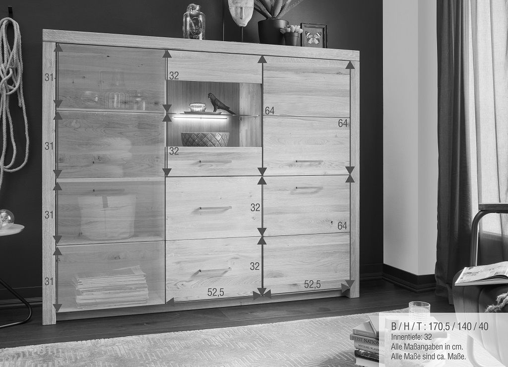 Highboard 170x141cm "Dover" Wildeiche geölt WZ-0169