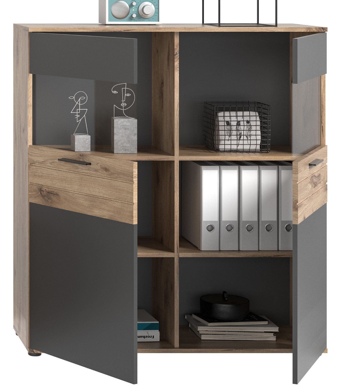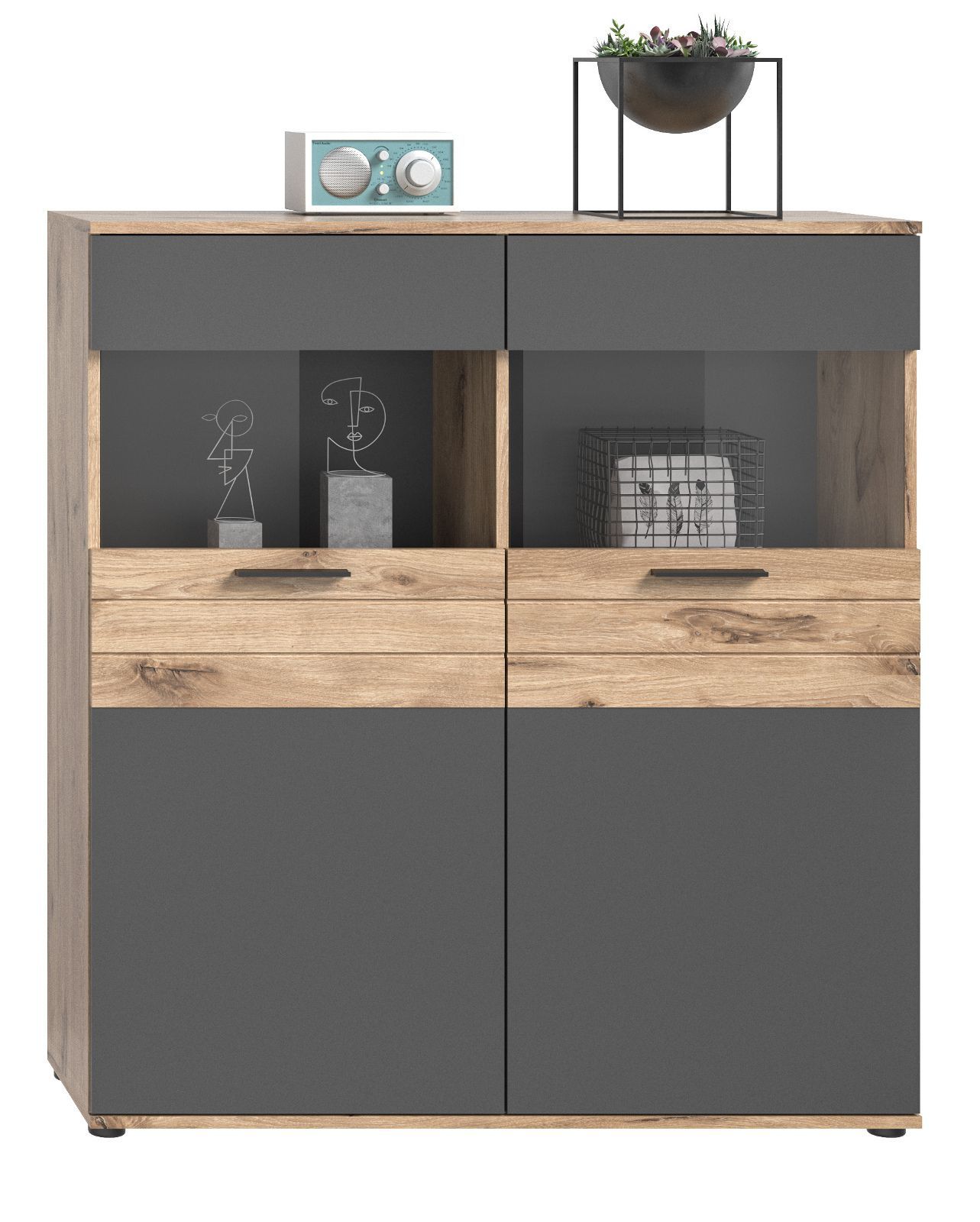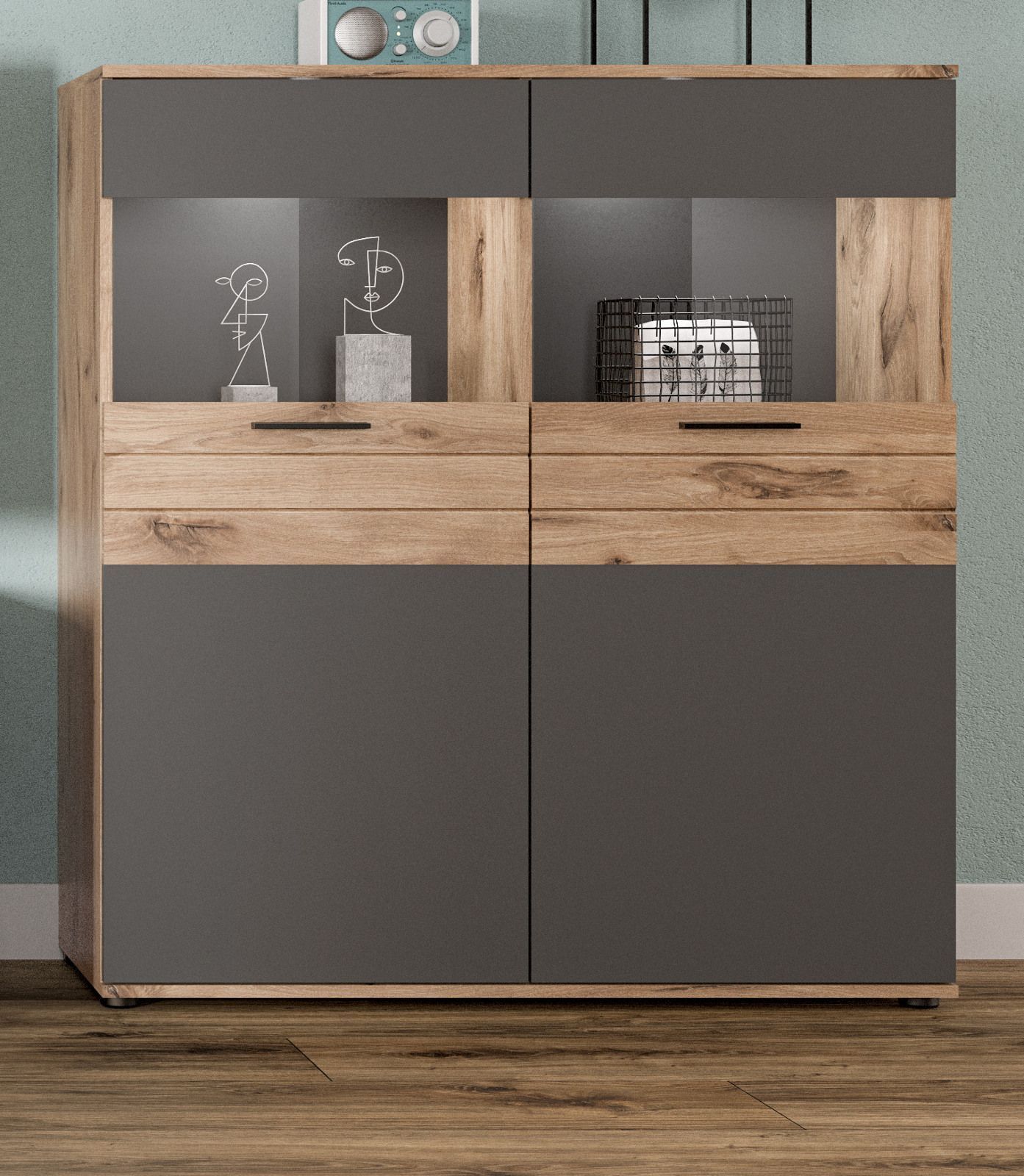 Highboard Anrichte Wohnzimmer Esszimmer Schrank Eiche grau mit Soft-Close Tomaso