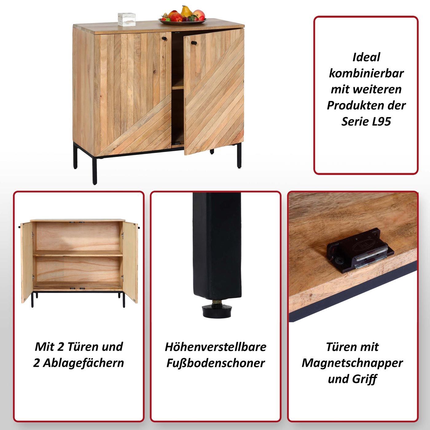 Mendler Highboard HWC-L95, Kommode Schrank Sideboard, Massiv-Holz Mango 86x90x43cm natur