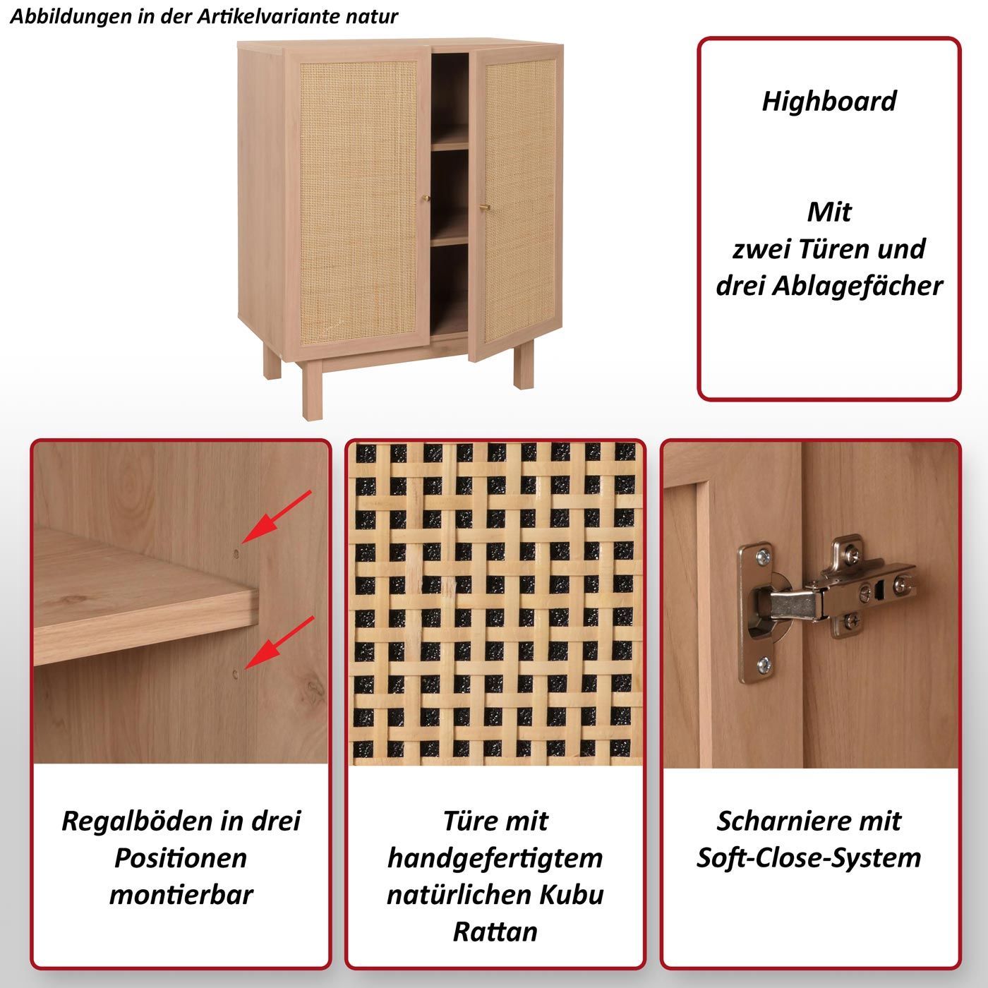 Mendler Highboard HWC-M51, Kommode Schrank Sideboard, Kubu Rattan