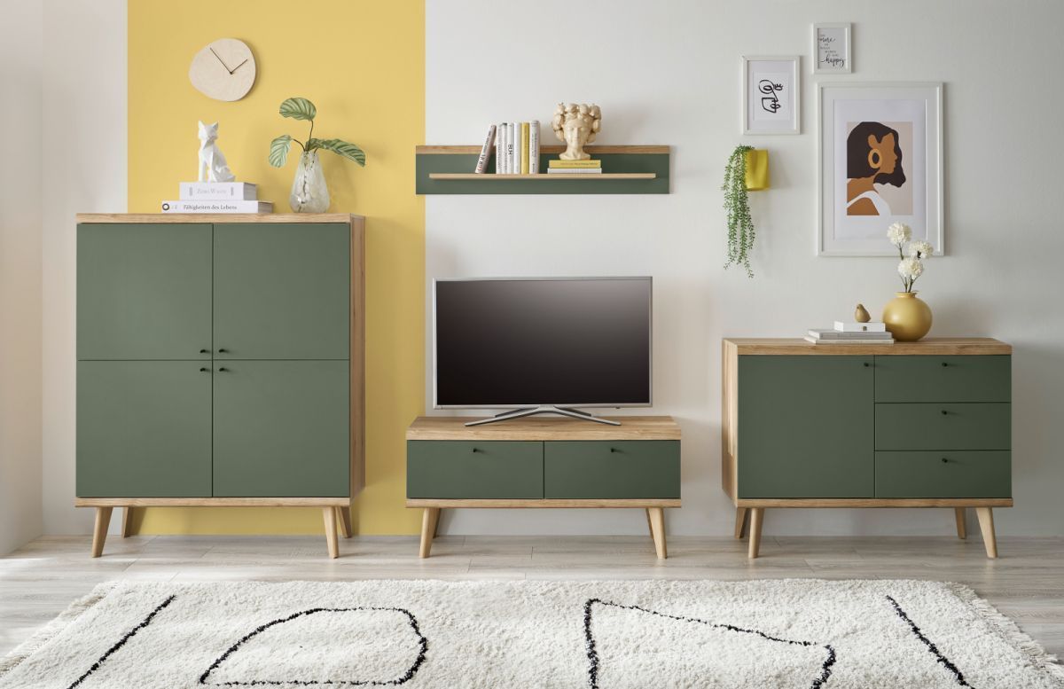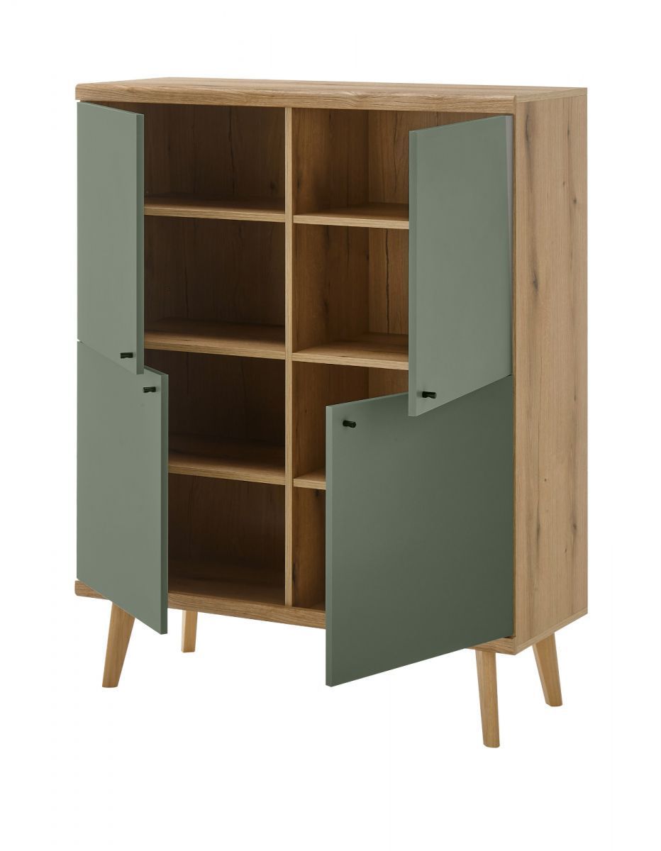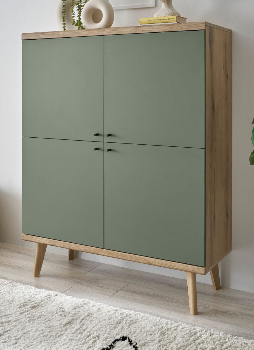Highboard in Salbei Eiche Kommode Wohnzimmer Esszimmer Schrank Juna 107 x 134 cm