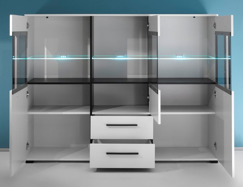 Highboard Kommode in weiß Hochglanz Stauraum Vitrine Schrank Design-D 160 cm