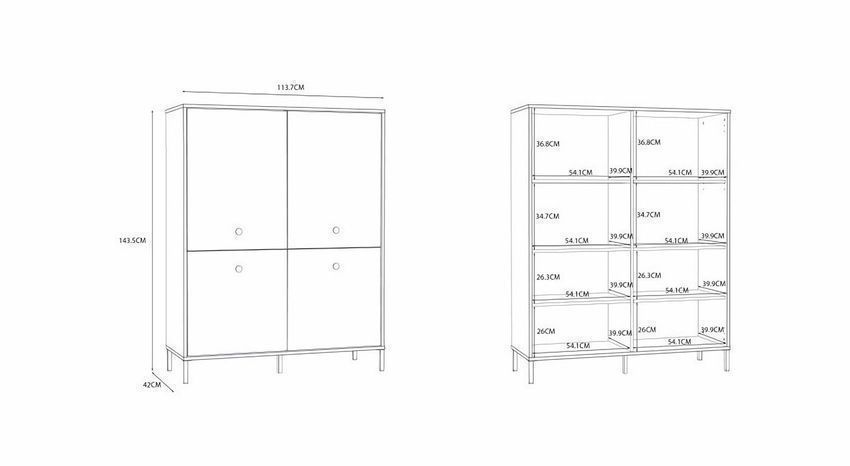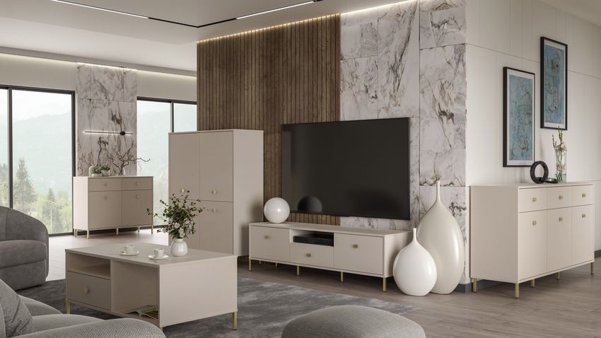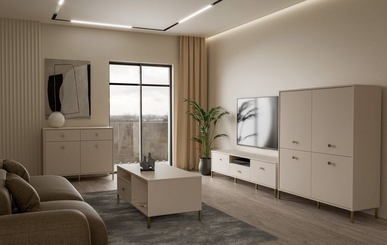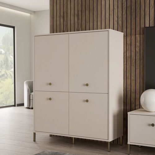 Highboard Salvatrice Kommode 114x144x42 cm 4 Türen Wohnzimmerschrank Beige