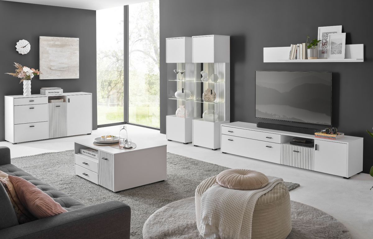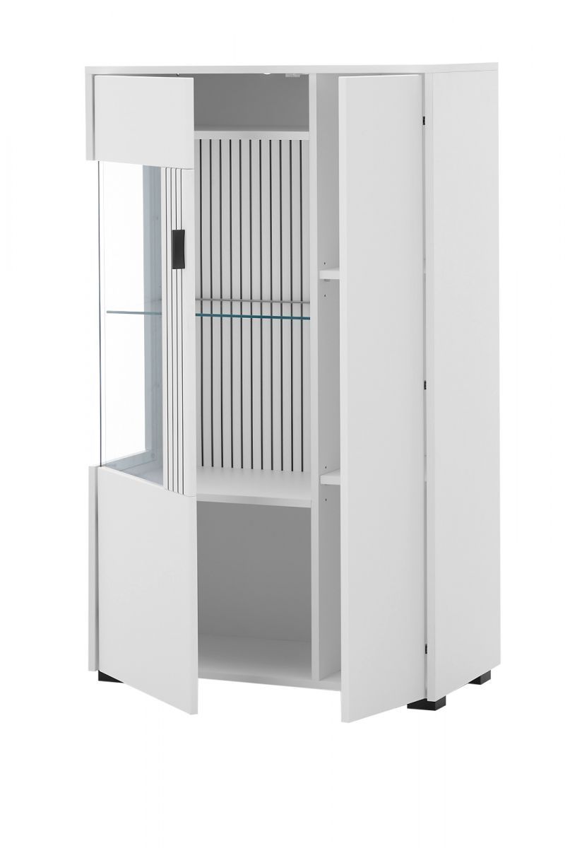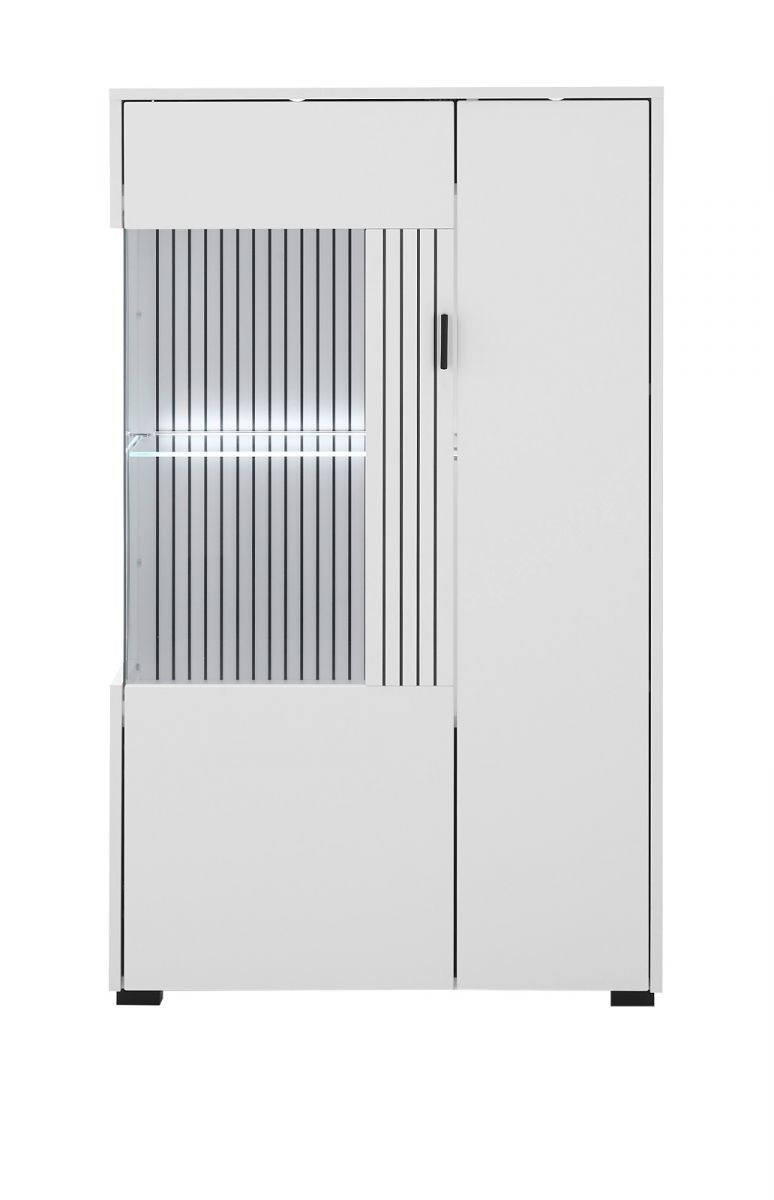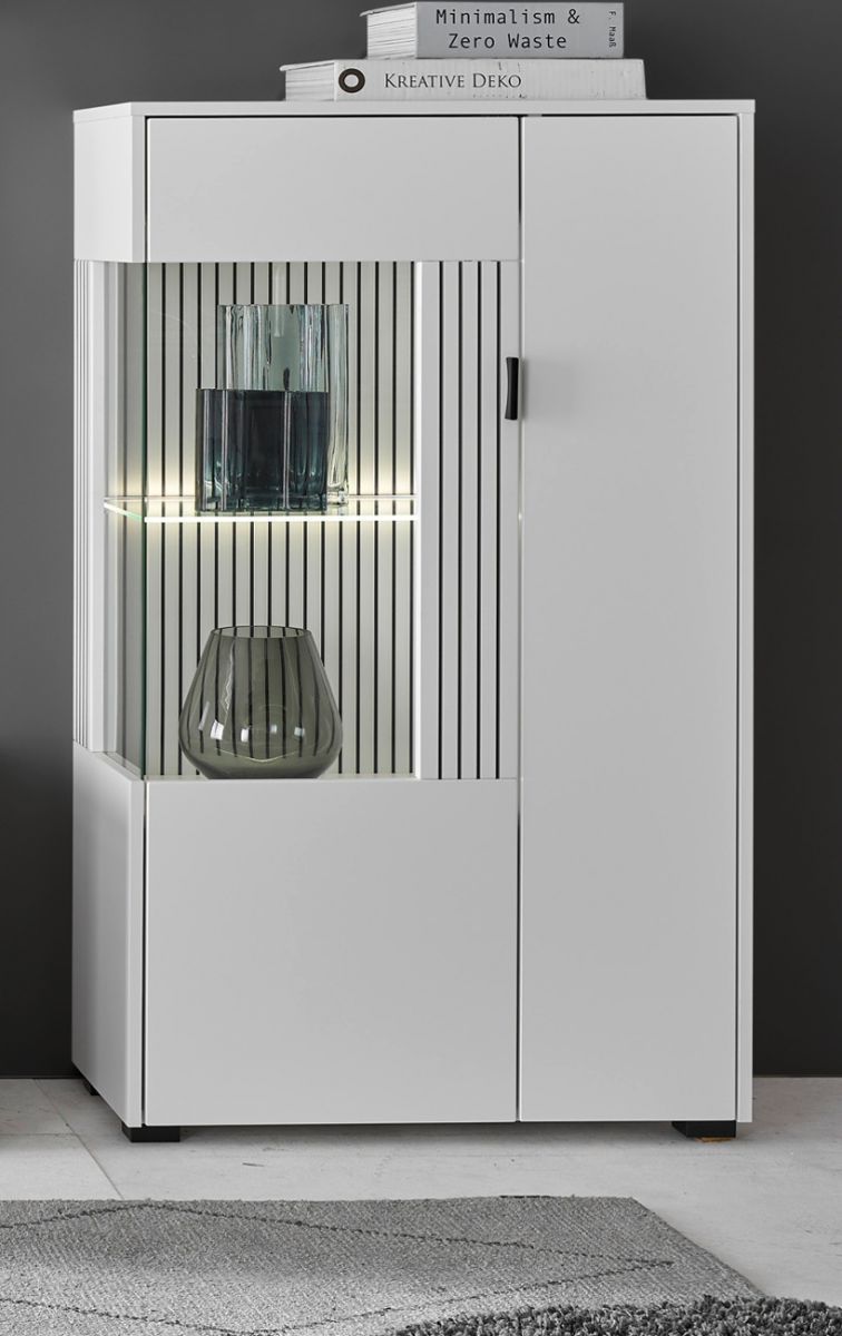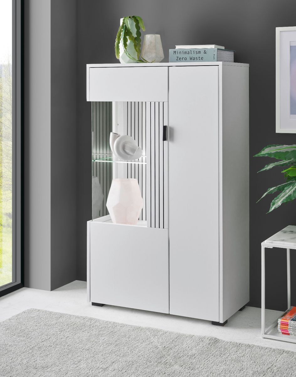 Highboard Vitrine in weiß matt Wohnzimmer Esszimmer Schrank mit Soft-Close Merced