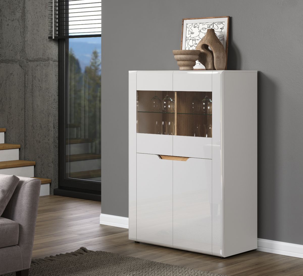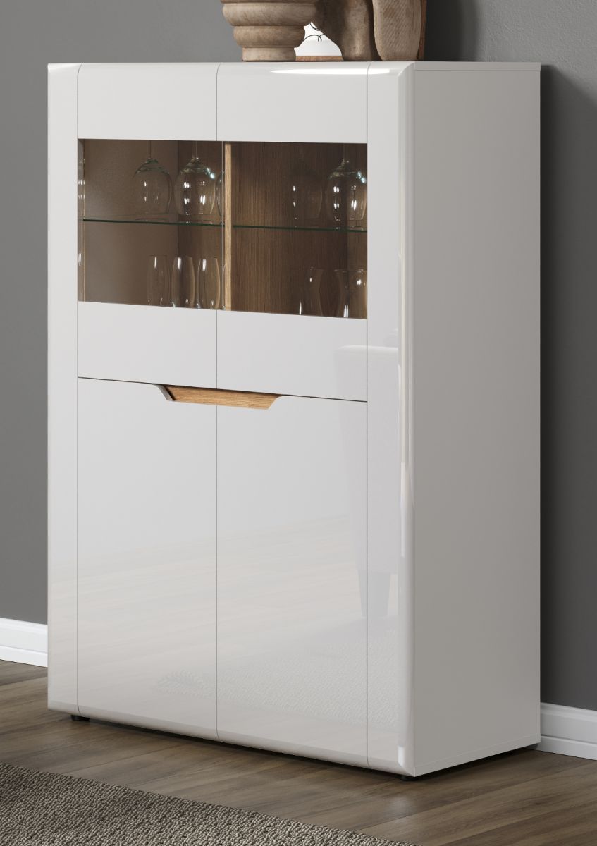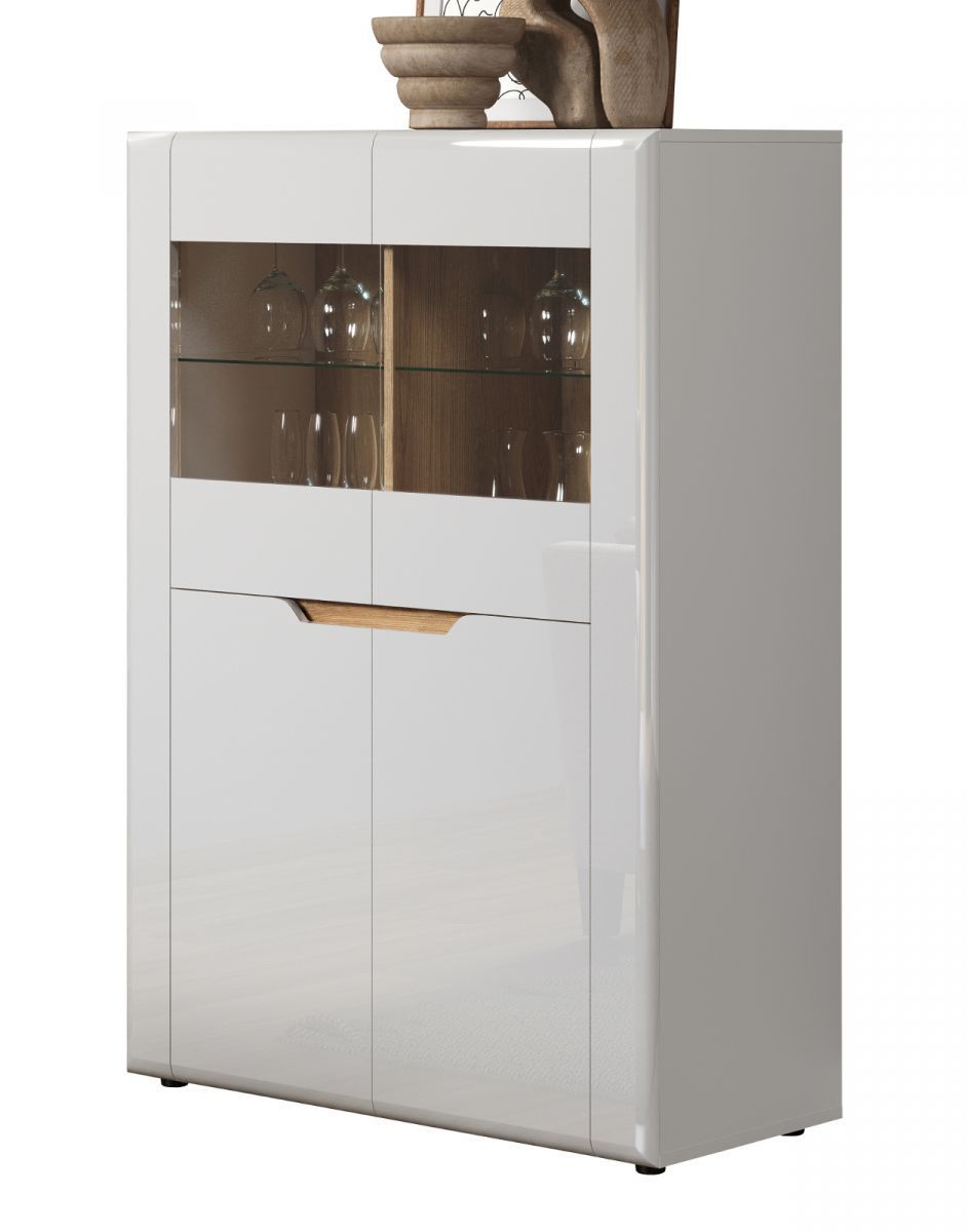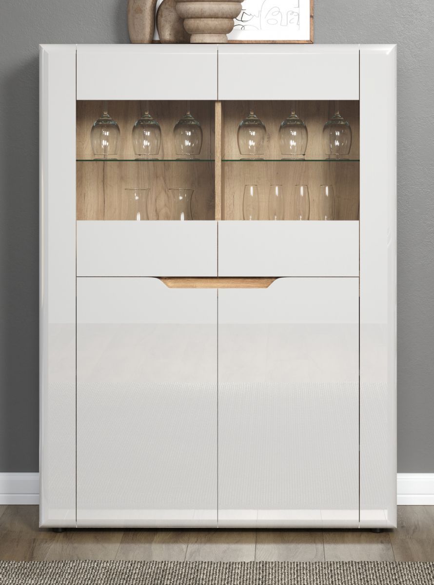 trendteam Highboard Vitrine weiß Hochglanz Eiche Wohnzimmer Esszimmer Kommode Marlon 96x132 cm