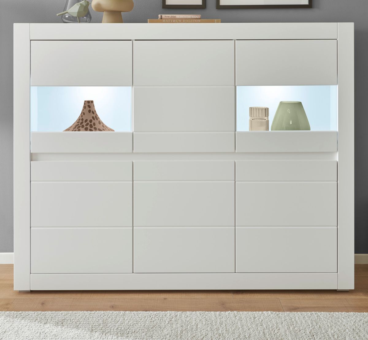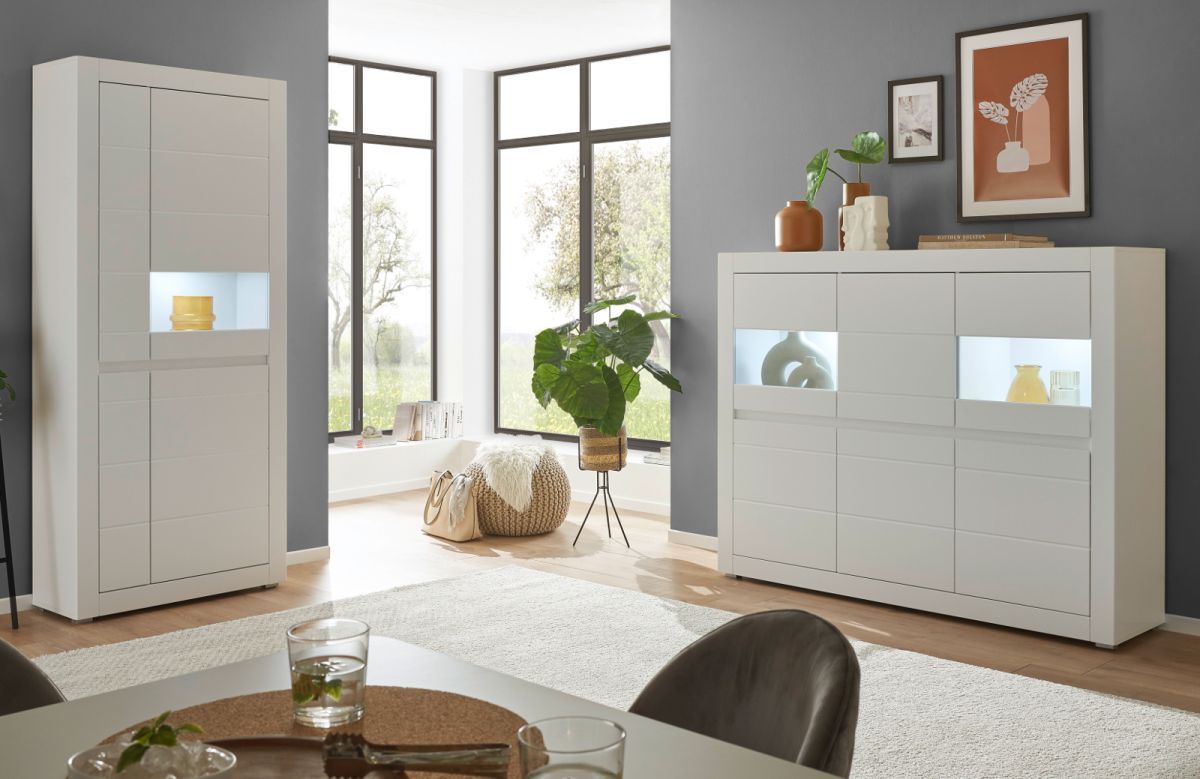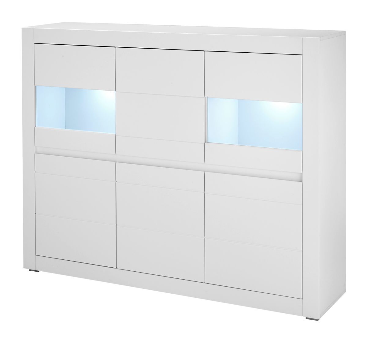 Highboard weiß Hochglanz Vitrine Wohnzimmer Esszimmer Schrank mit Soft-Close Derby