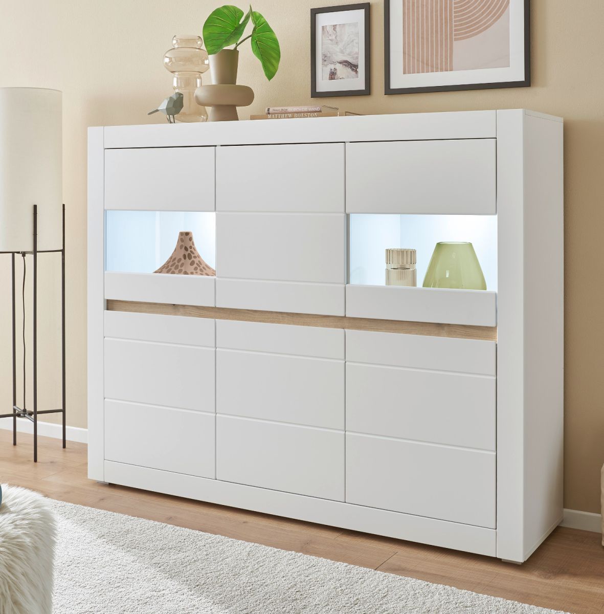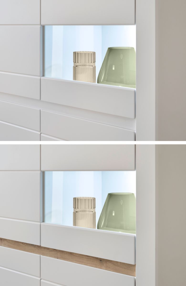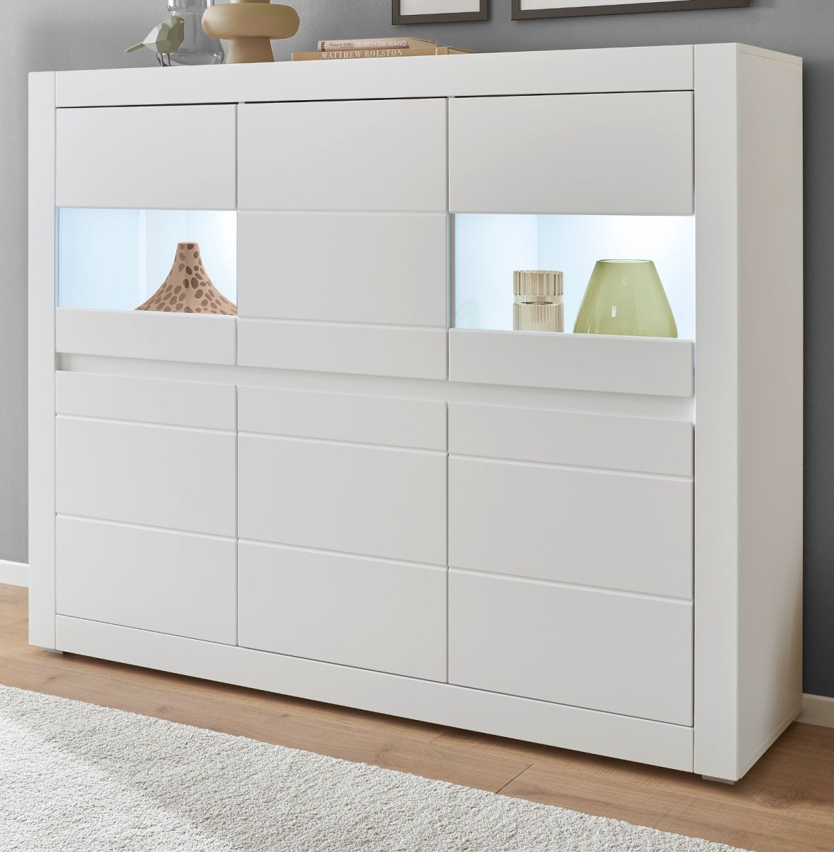 Highboard weiß Hochglanz Vitrine Wohnzimmer Esszimmer Schrank mit Soft-Close Derby