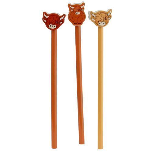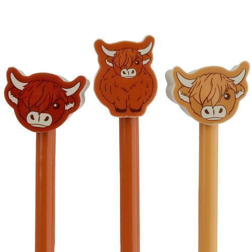 Highland Coo Kuh 7-er Set Bleistift mit Kuh geformten Radierer (pro Stück)