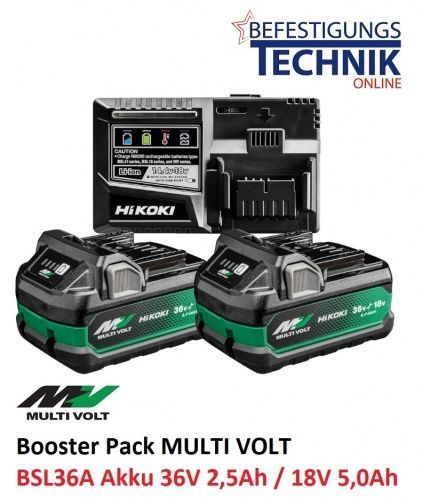 HiKOKI Hitachi Multi Booster Pack A Multi Volt 2x Akku BSL36A18X 36V/2,5Ah + Ladegerä