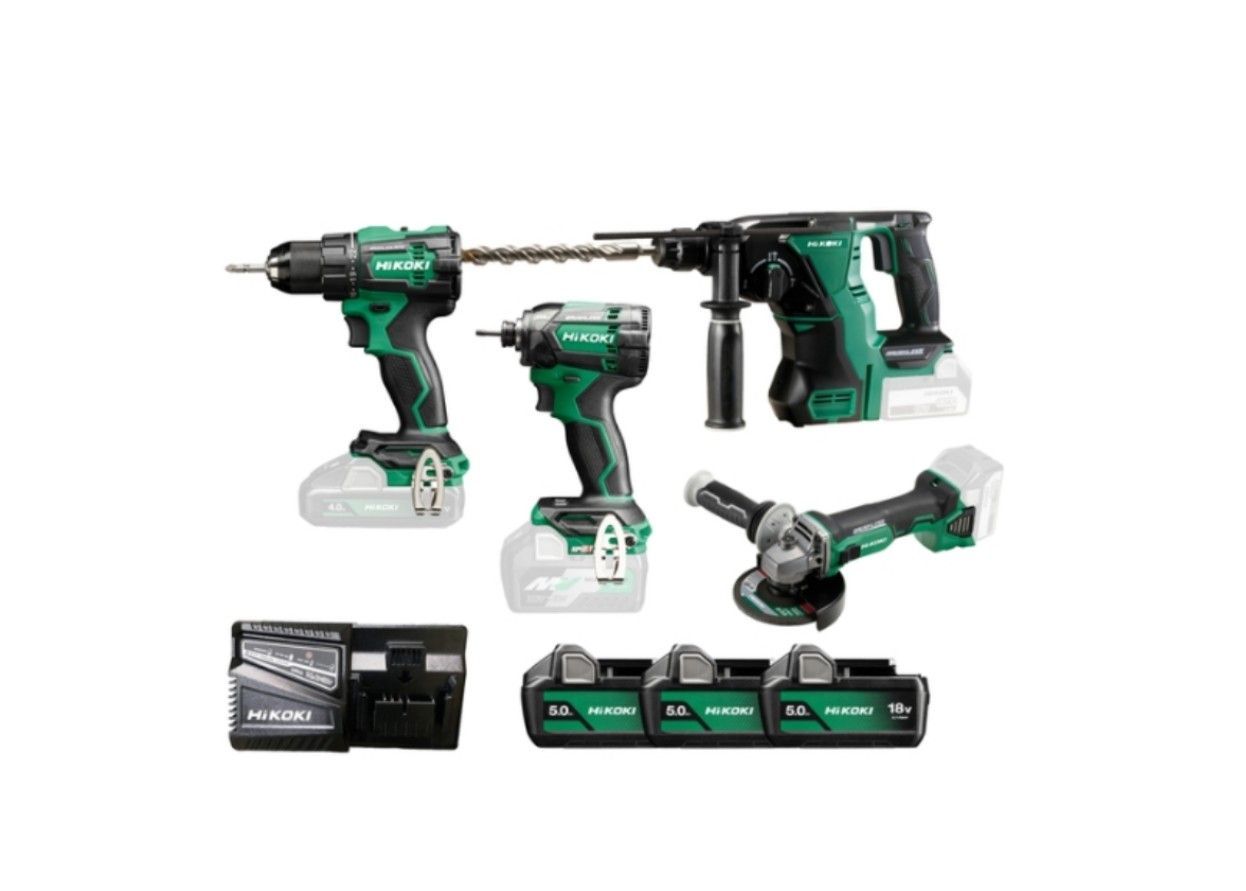Hikoki KC18DEWHZ Combo-Kit Akku Bohrsch.+ Schlagsch. + Winkelsch.+ Bohr-/ Meißelh