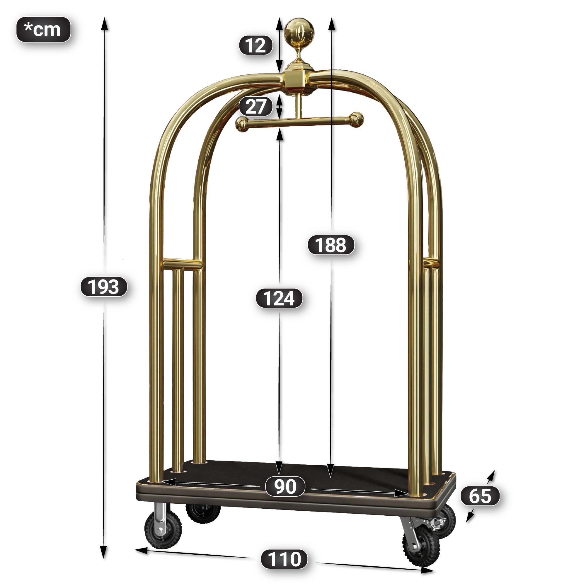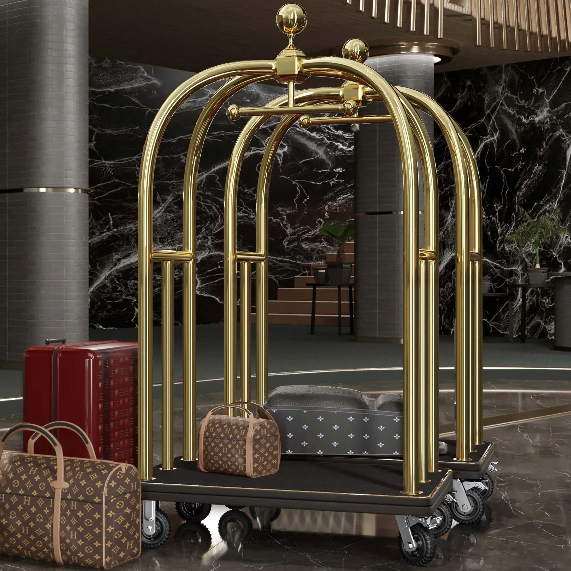 HILTON | Hotelgepäckwagen | Gold | max: 300kg | Gepäckwagen Hotelwagen Kofferwagen