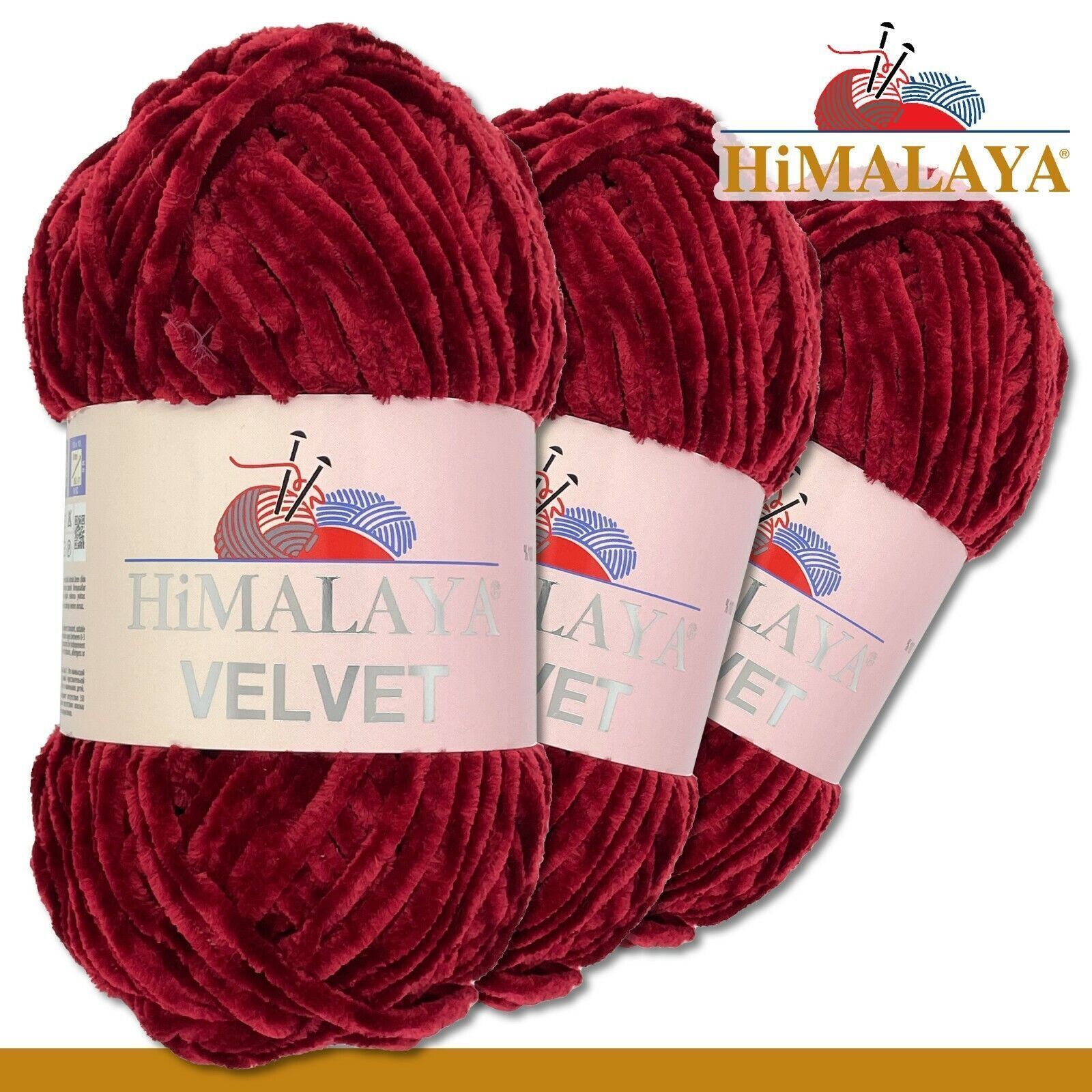 Himalaya 3x100 g Velvet Premium Wolle | 90022 Kirschrot|Chenille Stricken Häkeln