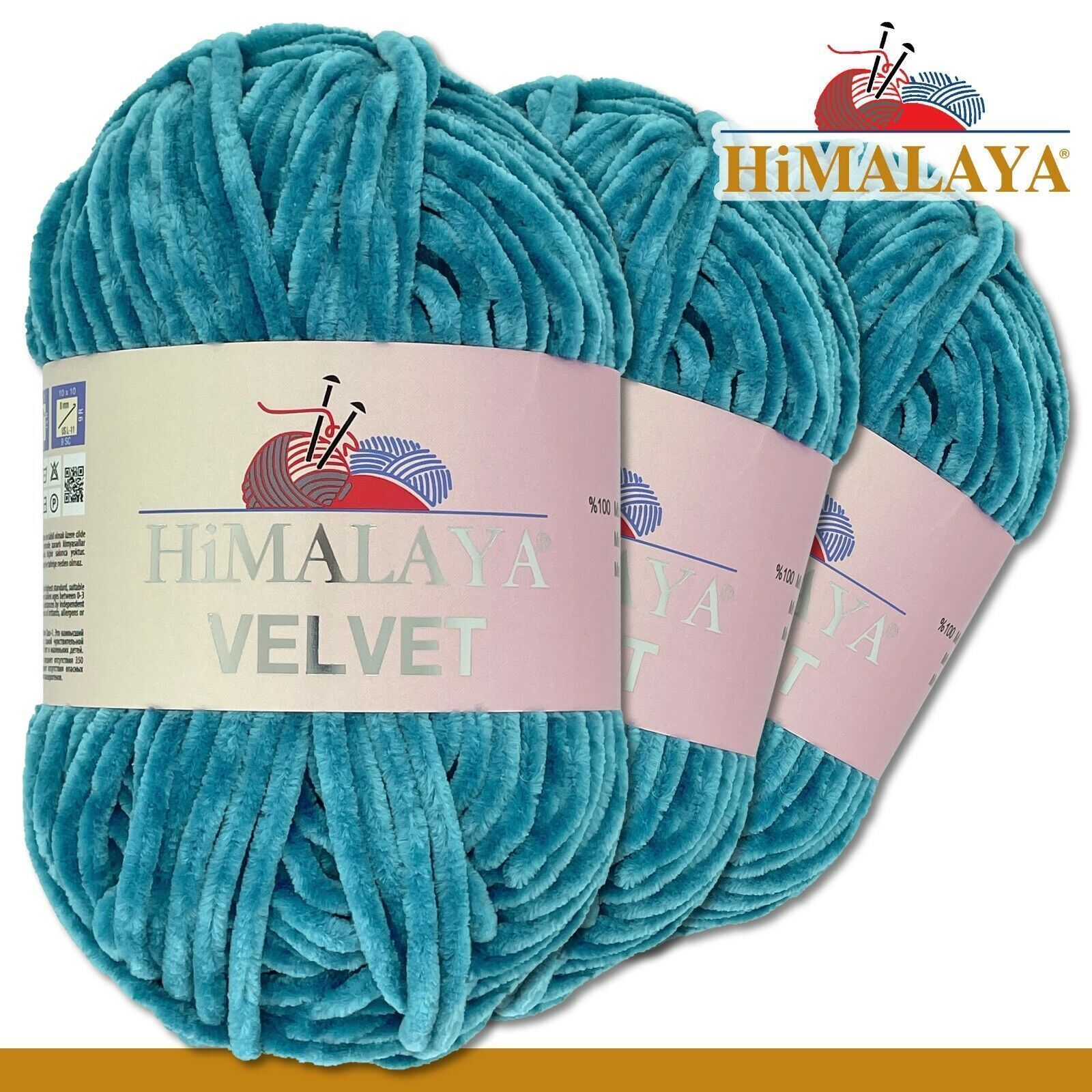 Himalaya 3x100 g Velvet Premium Wolle|90041 Pazifikblau|Chenille Stricken Häkeln