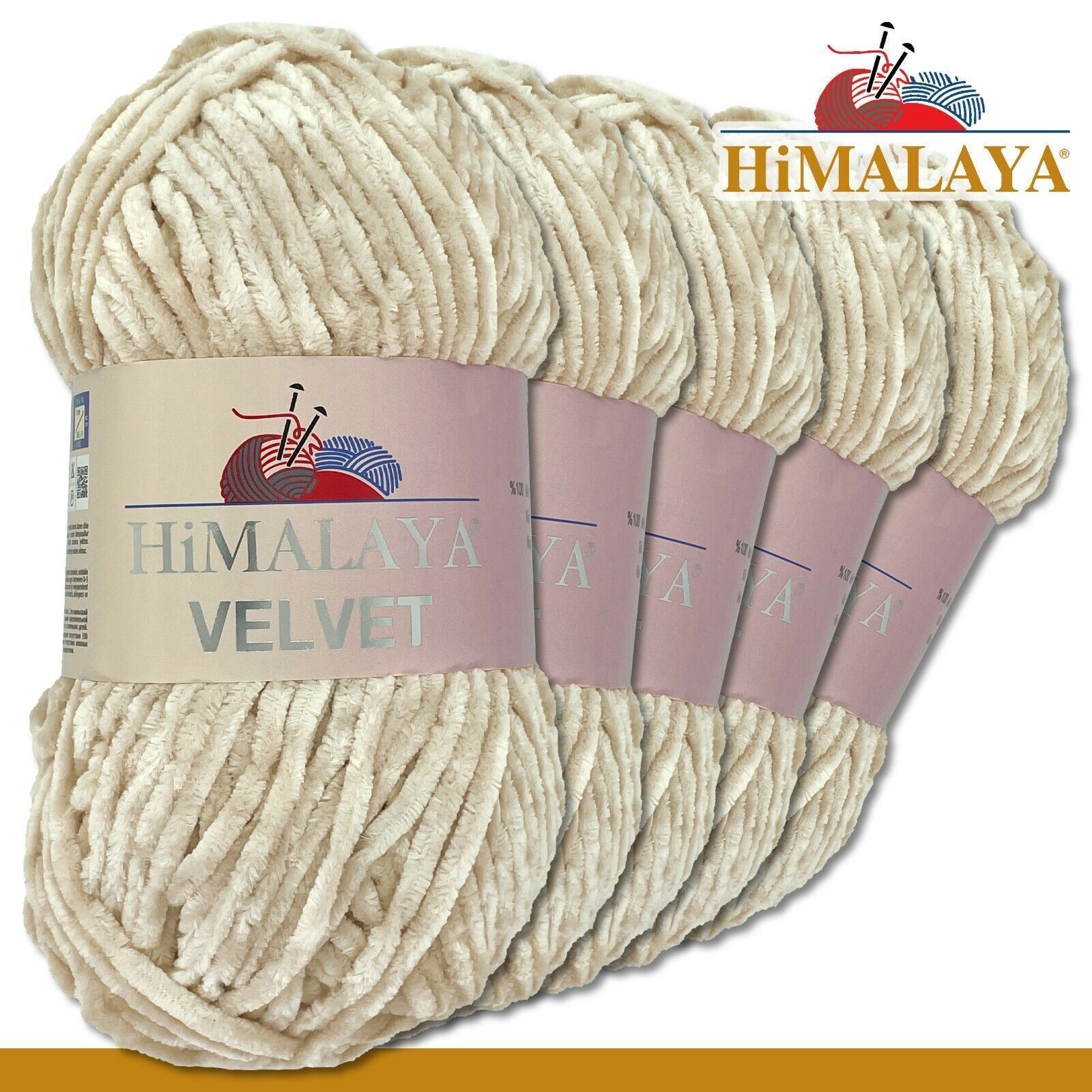 Himalaya 5x100 g Velvet Premium Wolle | 90042 Beige | Chenille Stricken Häkeln