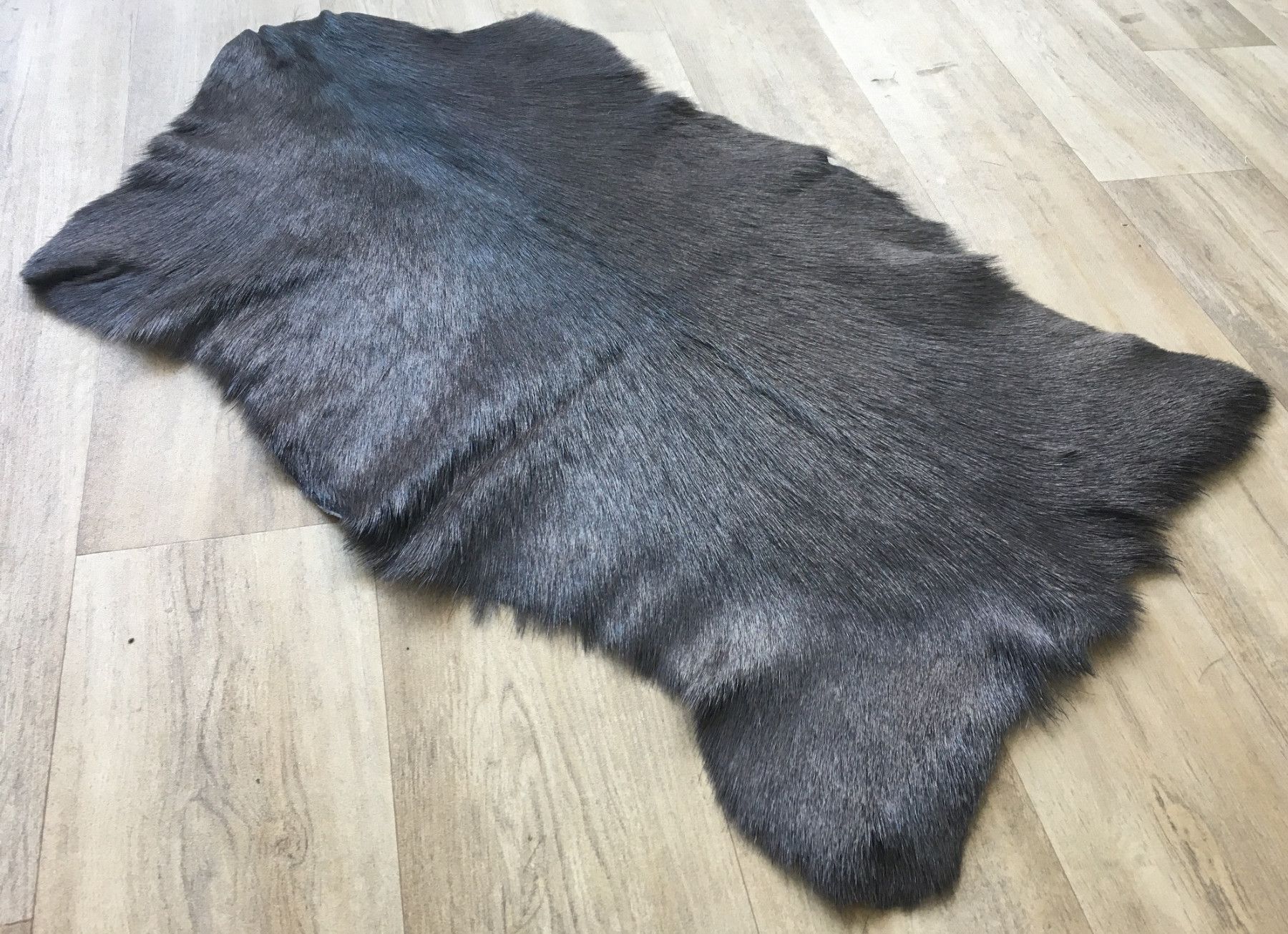Himalaya Ziegenfell Berg-Ziegen Fell-Leder-Teppich Naturfell Dunkelgrau