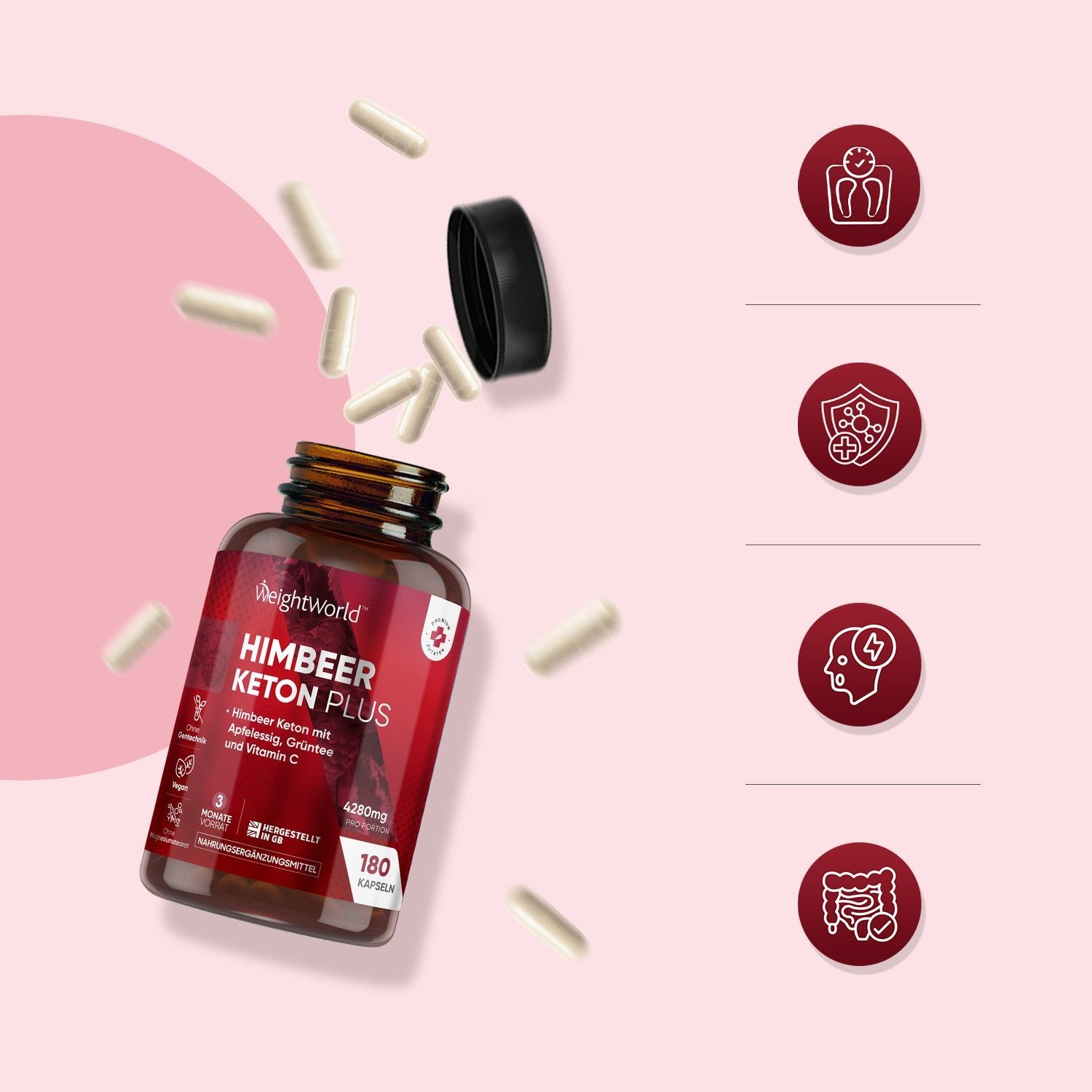 Himbeerketon Plus- 4280mg pro Portion - 180 Vegane Kapseln - 3 Monate Vorrat - 2 Pack