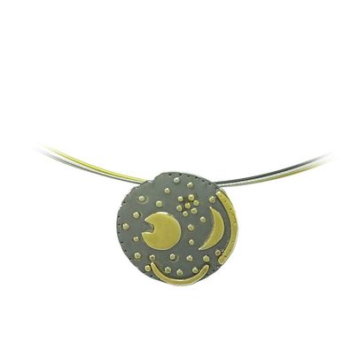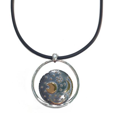 • trendor Schmuck Damenkette Himmelsscheibe von Nebra Silber schwarz/gold ? 25 mm 2145