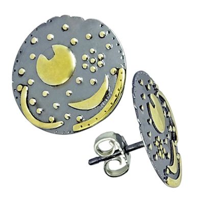 • Paar Ohrstecker 10mm Himmelsscheibe von Nebra Sternenschmuck 925-Silber bicolor