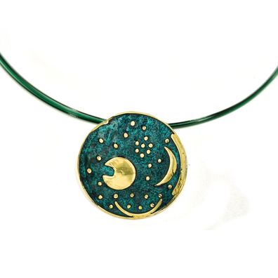 • Himmelsscheibe von Nebra 30mm grün emailliert Sternenschmuck Silber Anhänger