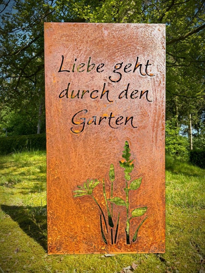 Hingucker Wunderschöne Stele LIEBE GEHT DURCH DEN GARTEN Edelrost Sichtschutz Rost