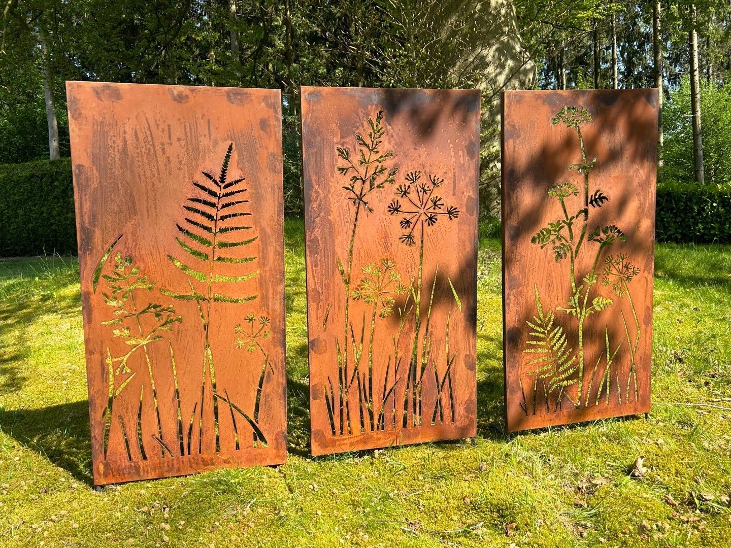 Hingucker Wunderschöne Stelen 3teilig Edelrost Hingucker Sichtschutz Gras Wiese 1-3