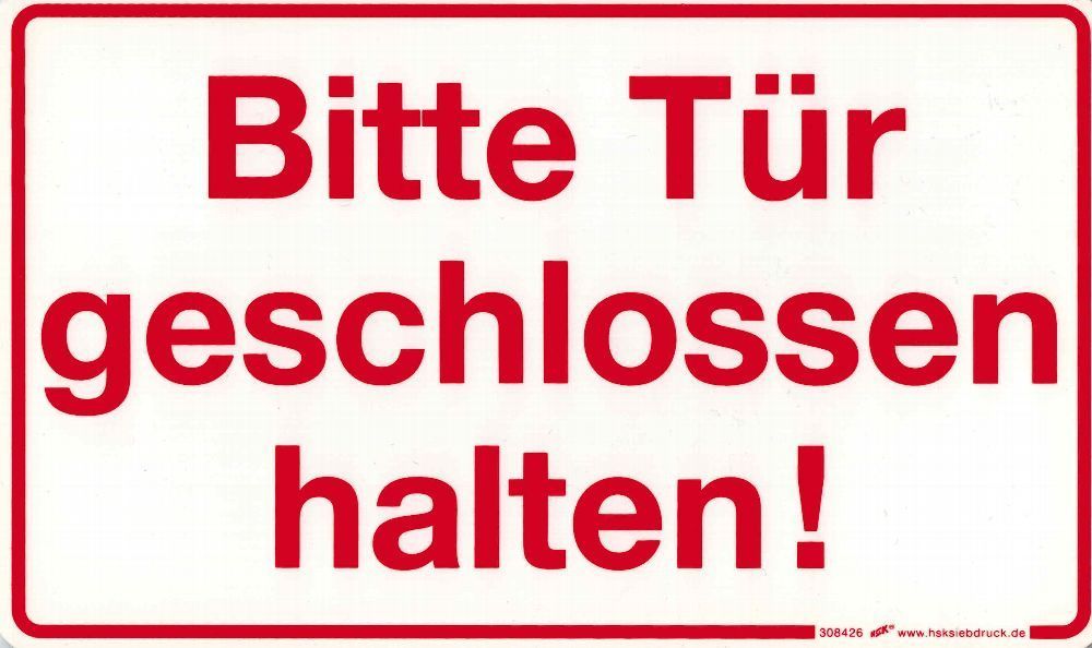 Hinweis- Schild - BITTE TÜR Geschlossen HALTEN ! - Gr. 25 X 15 cm - 308426