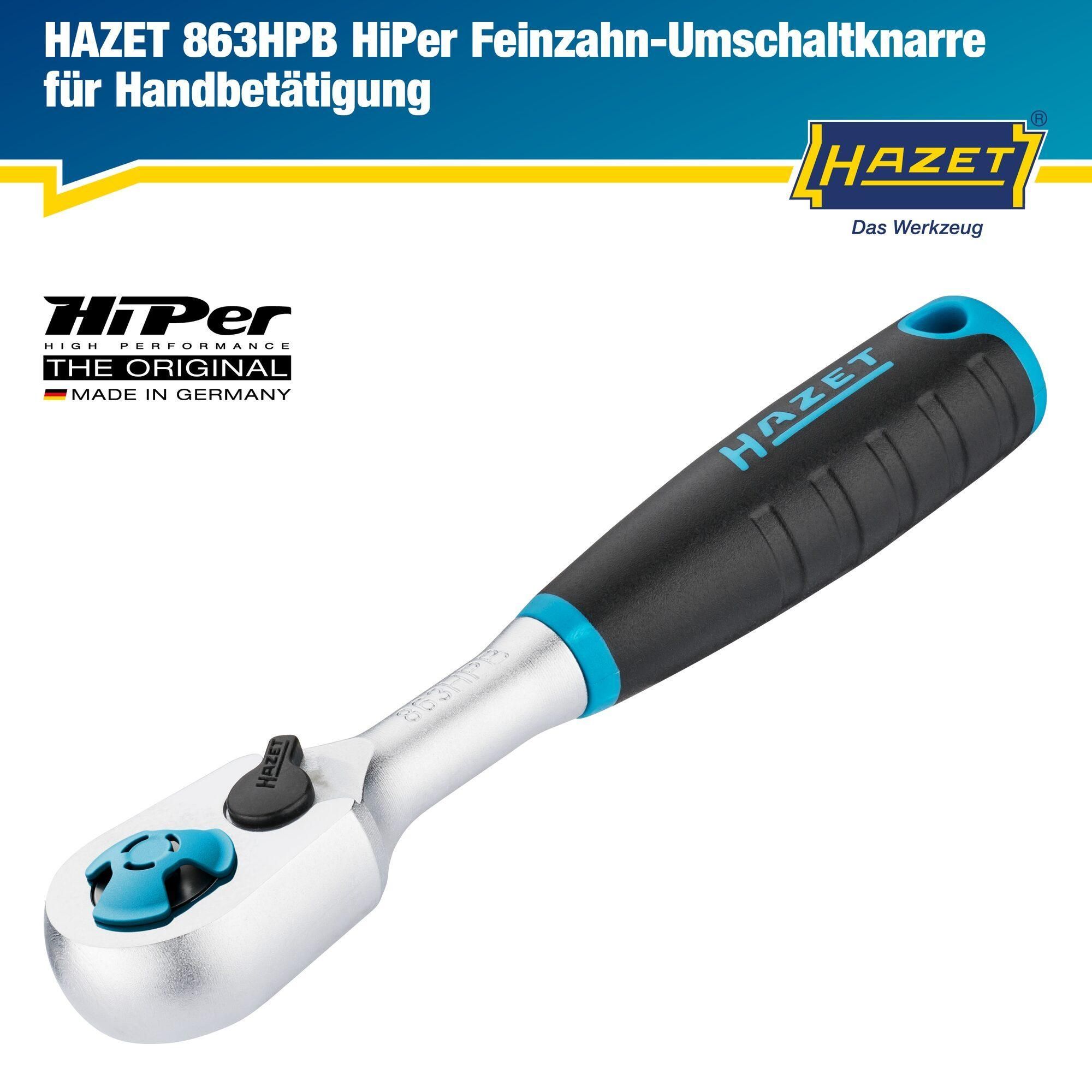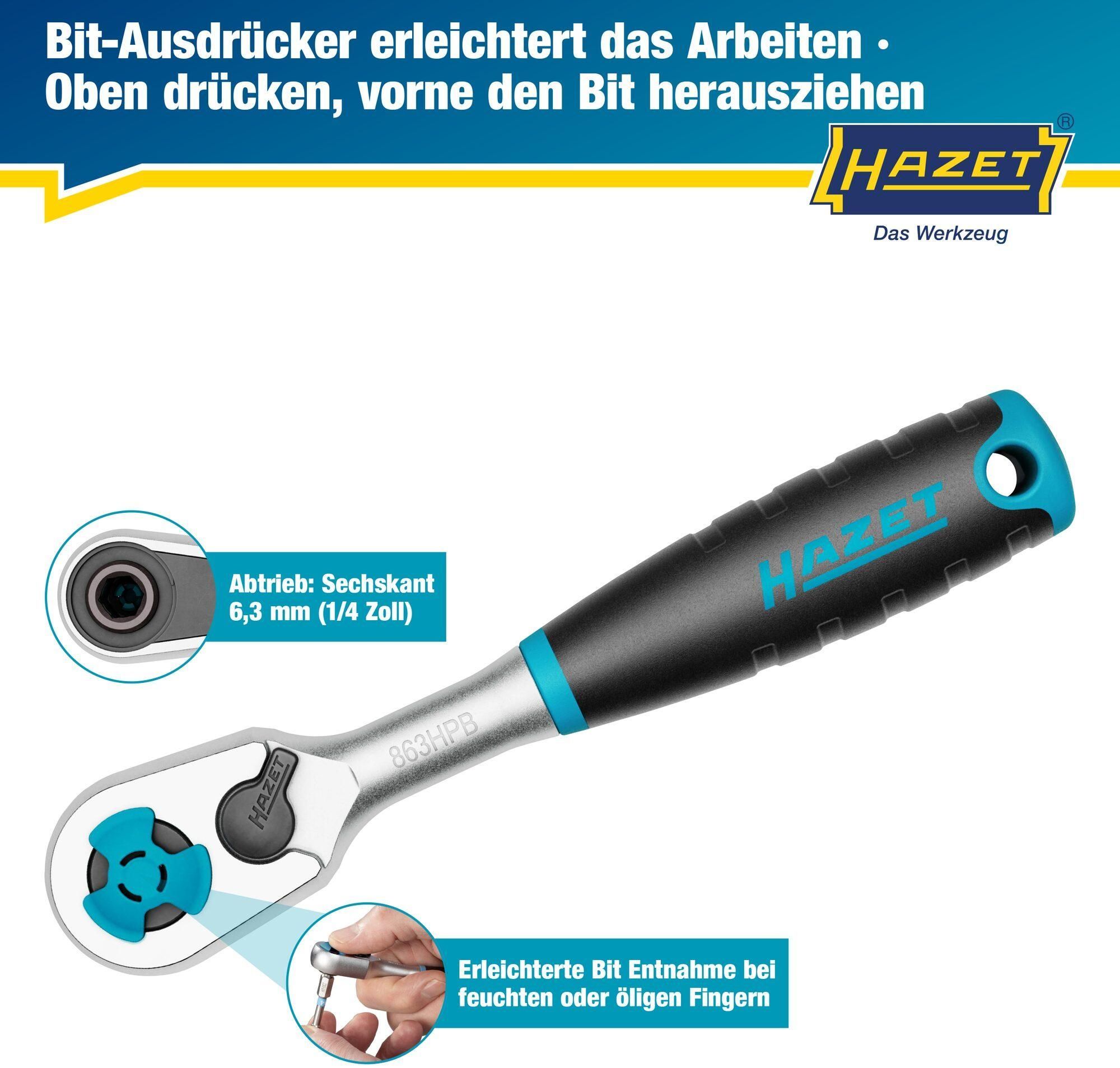 HAZET HiPer Feinzahn-Umschaltknarre für Bits ? mit Bit-Ausdrücker 863HPB ? 1/4 Zoll (6,3 m