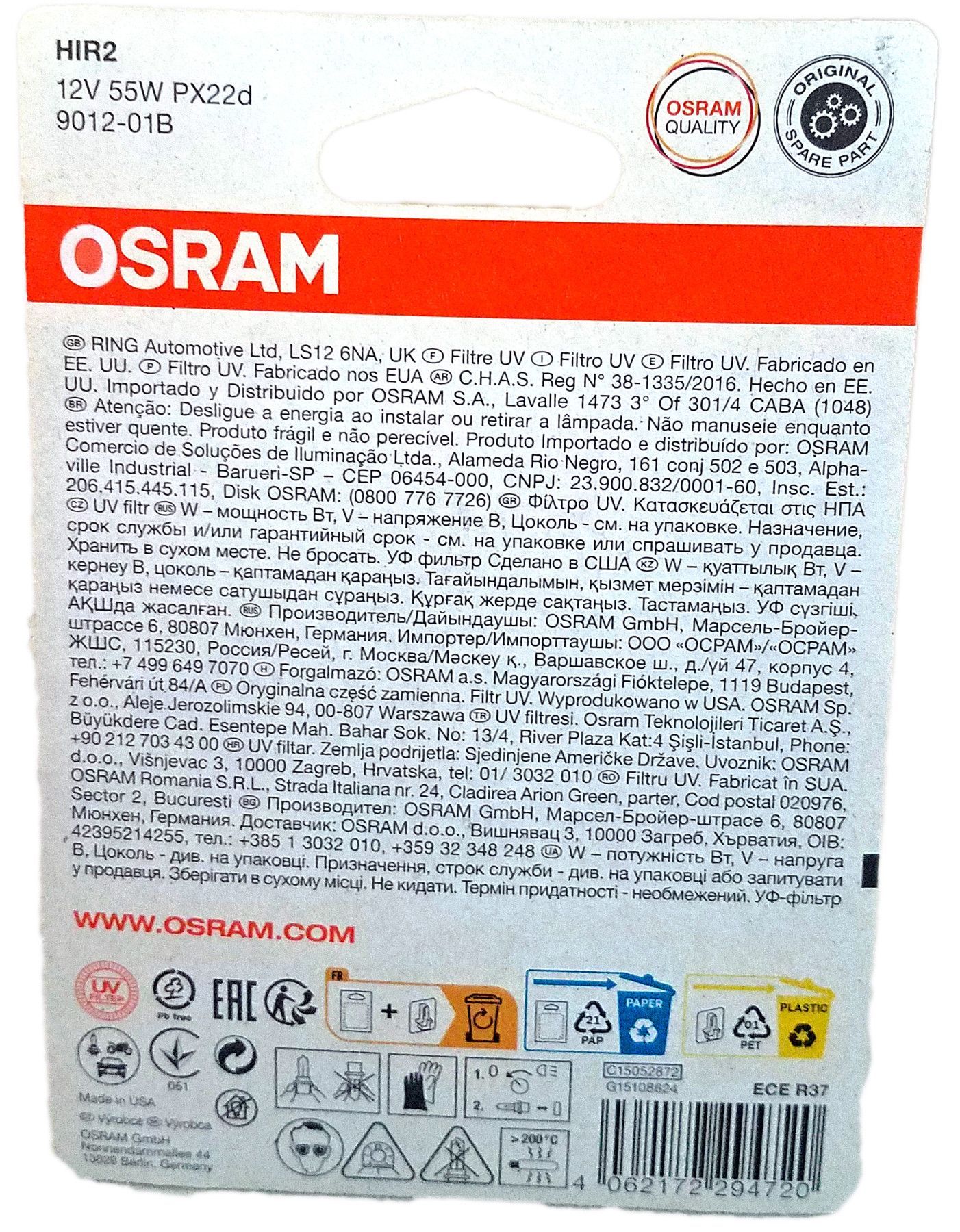 Osram HIR2 OSRAM Original Spare Part 12V 55W 1st Blister 9012-01B