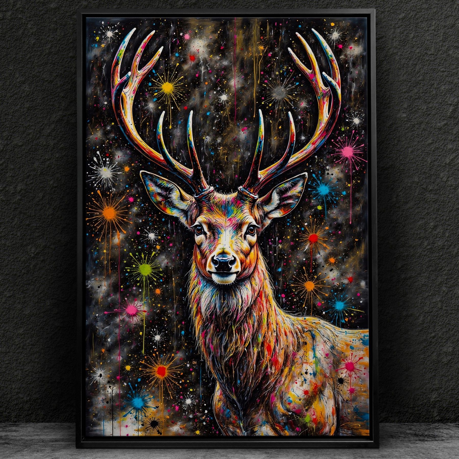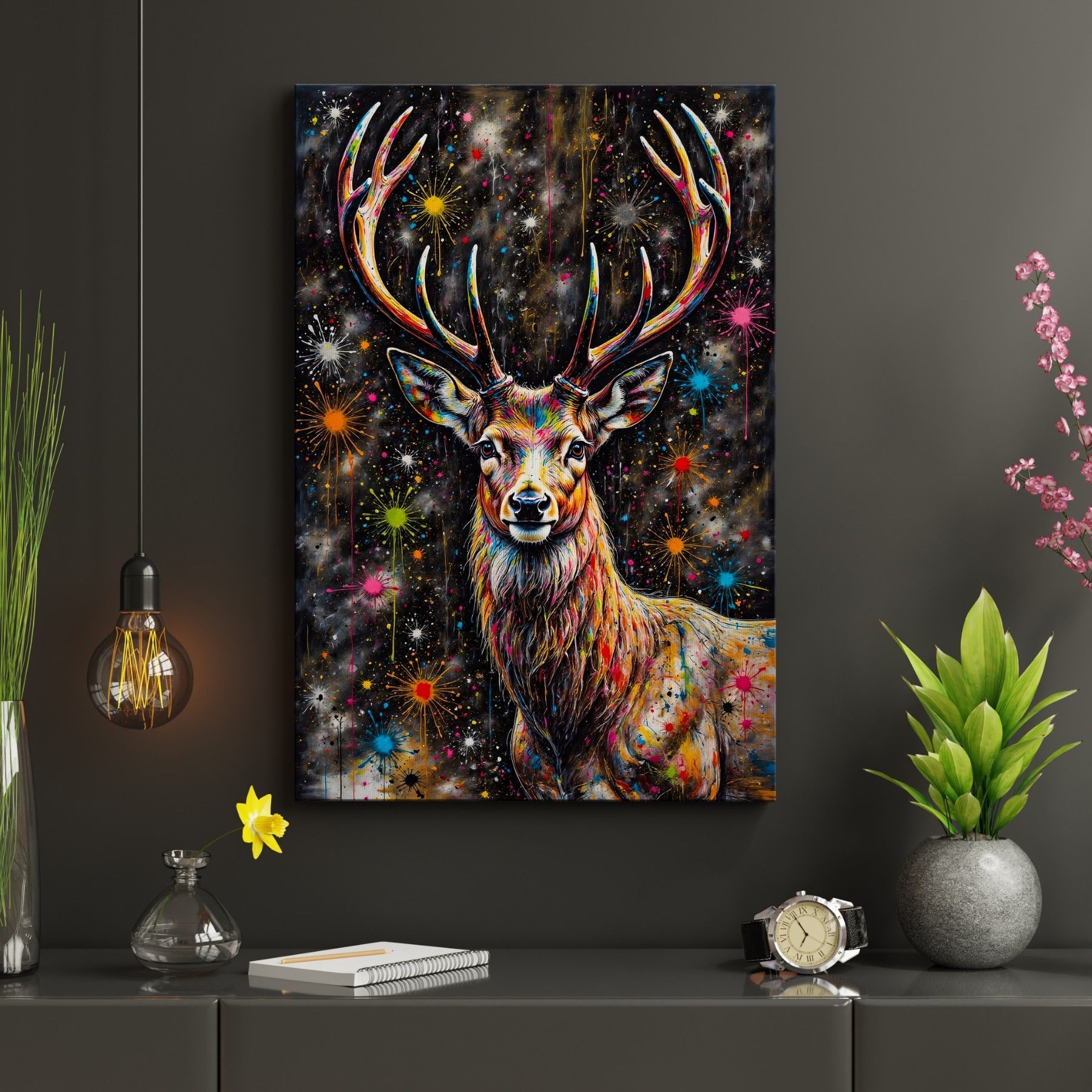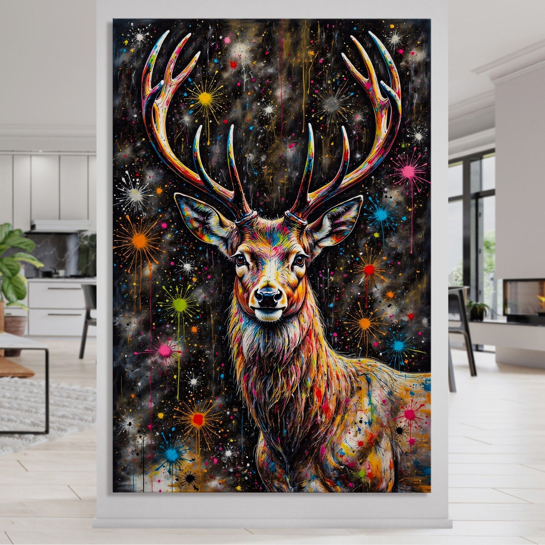 Hirsch in Farben Kunst, Tier Animal Wandbild Leinwand, Acrylglas, Poster Bild Deko