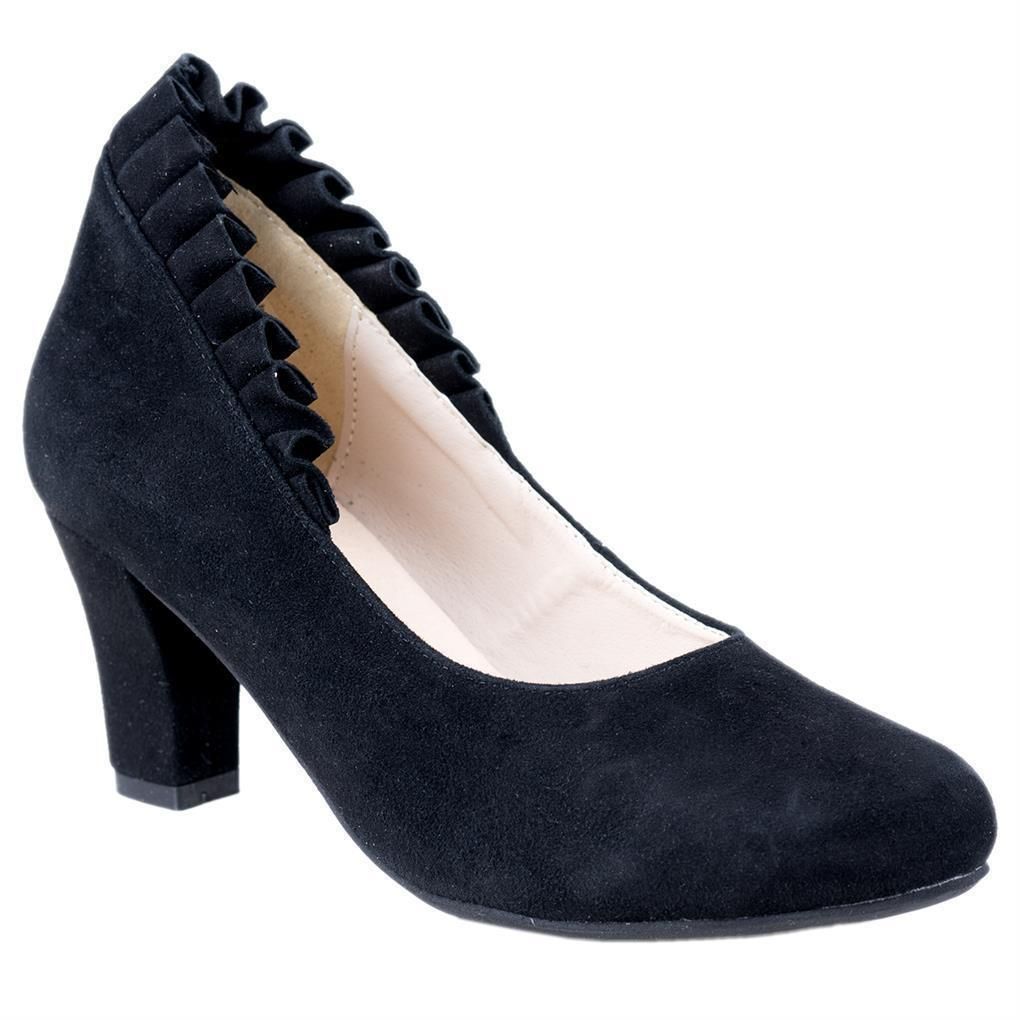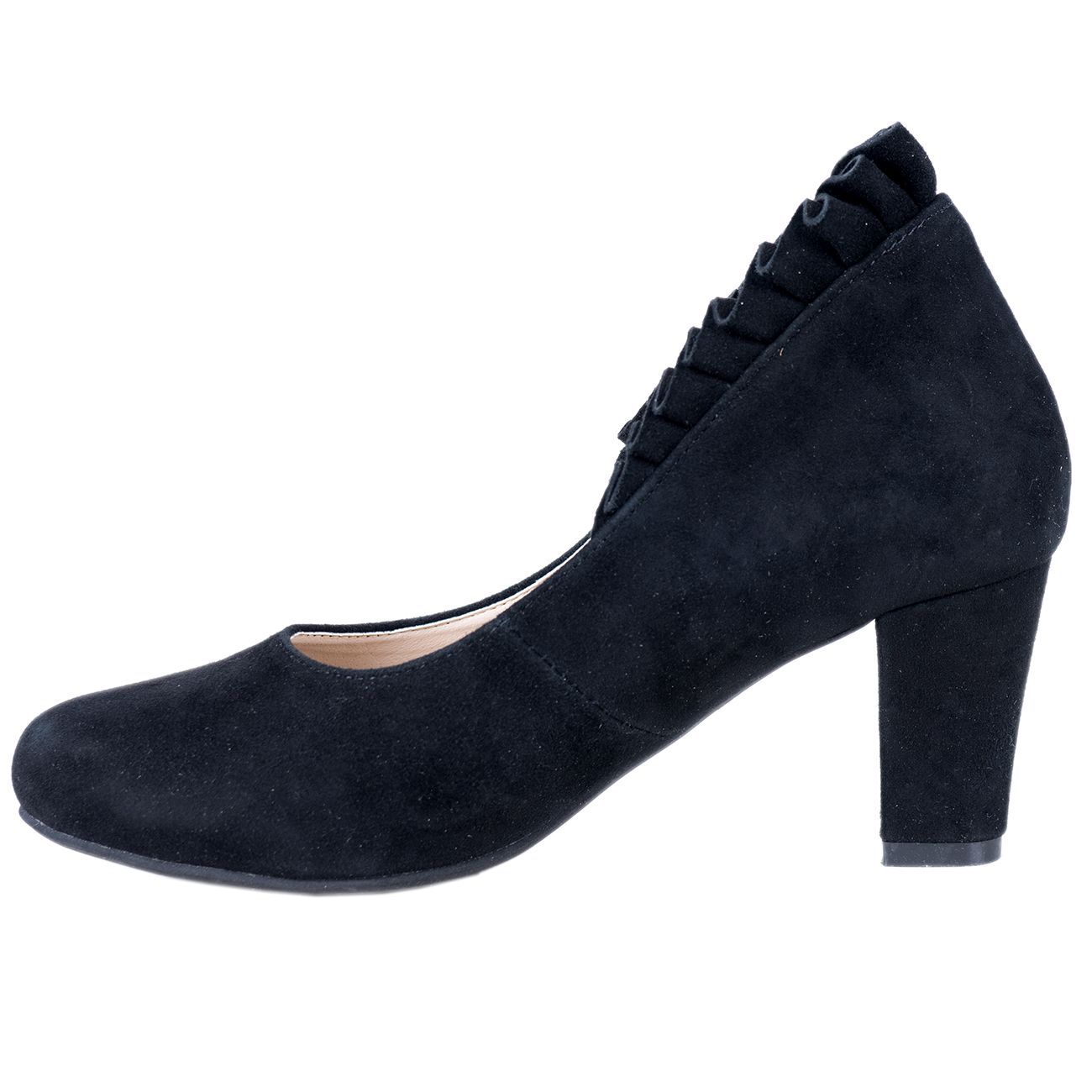Hirschkogel Trachtenpumps mit Rüschen Schöne Pumps in schwarz aus weichem Veloursleder. Die Trachtenschuhe für Damen können bestens zu vielen Dirndln und Trachten kombiniert werden. Durch die schwarze Farbe sind die Dirndlschuhe farblich zu sehr vielen Dirndln passend. Die Sohle der Absatzschuhe bietet sehr viel Tragekomfort. Dadurch sind die Damenschuhe auch für langes Tragen auf Volksfesten, wie dem Volksfest, geeignet. • Hirschkogel Art.3008706002 • Enthält nicht-...