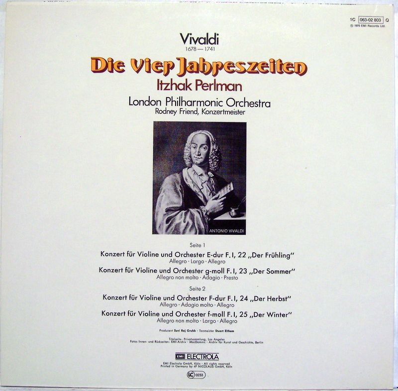 His Master's Voice 1C 063-02803 Q - Antonio Vivaldi, Itzhak Perlman, London Phil