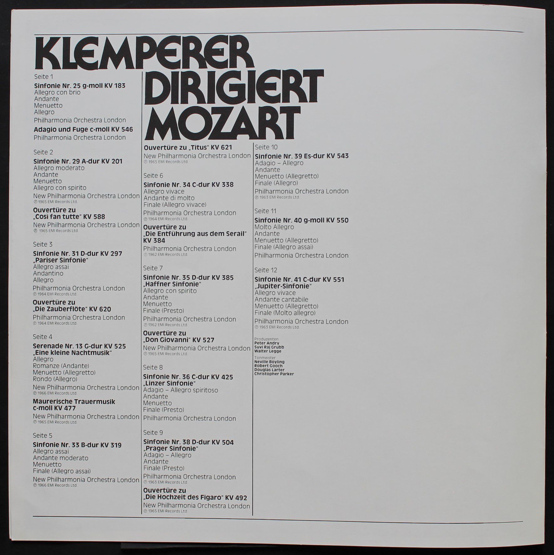His Master's Voice 1C 153-01842/47 Y - Wolfgang Amadeus Mozart, Otto Klemperer