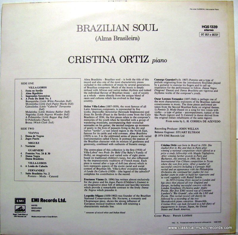 His Master's Voice HQS 1339 - Cristina Ortiz - Brazilian Soul (Alma Brasileira)