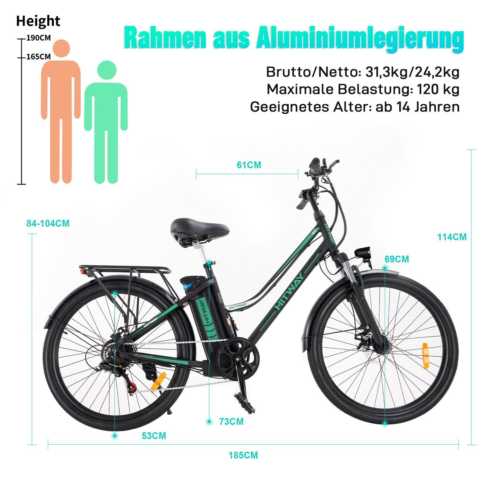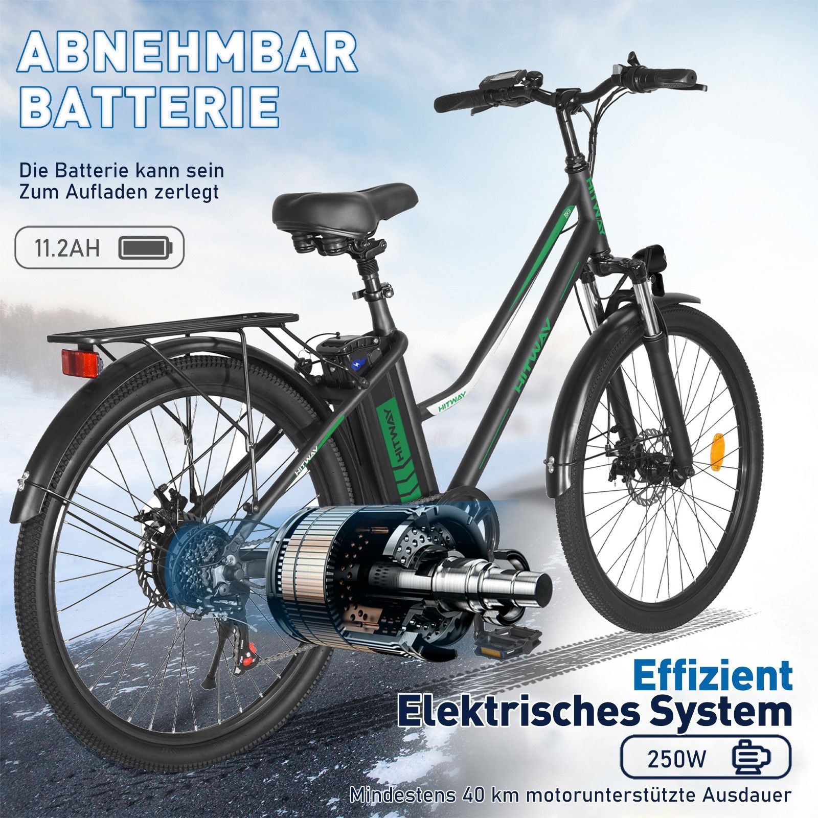 HITWAY 26 Zoll E-Bike Elektrofahrrad 11,2Ah/8,4Ah 35-90KM Citybike Elektro bike