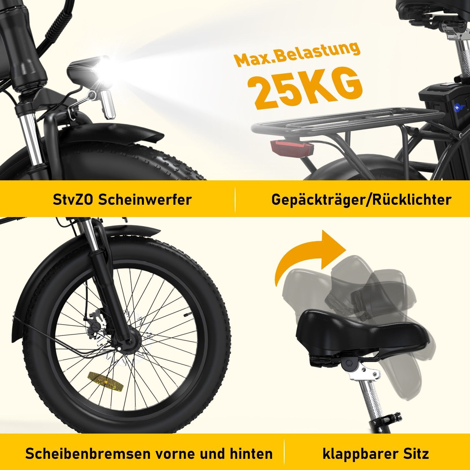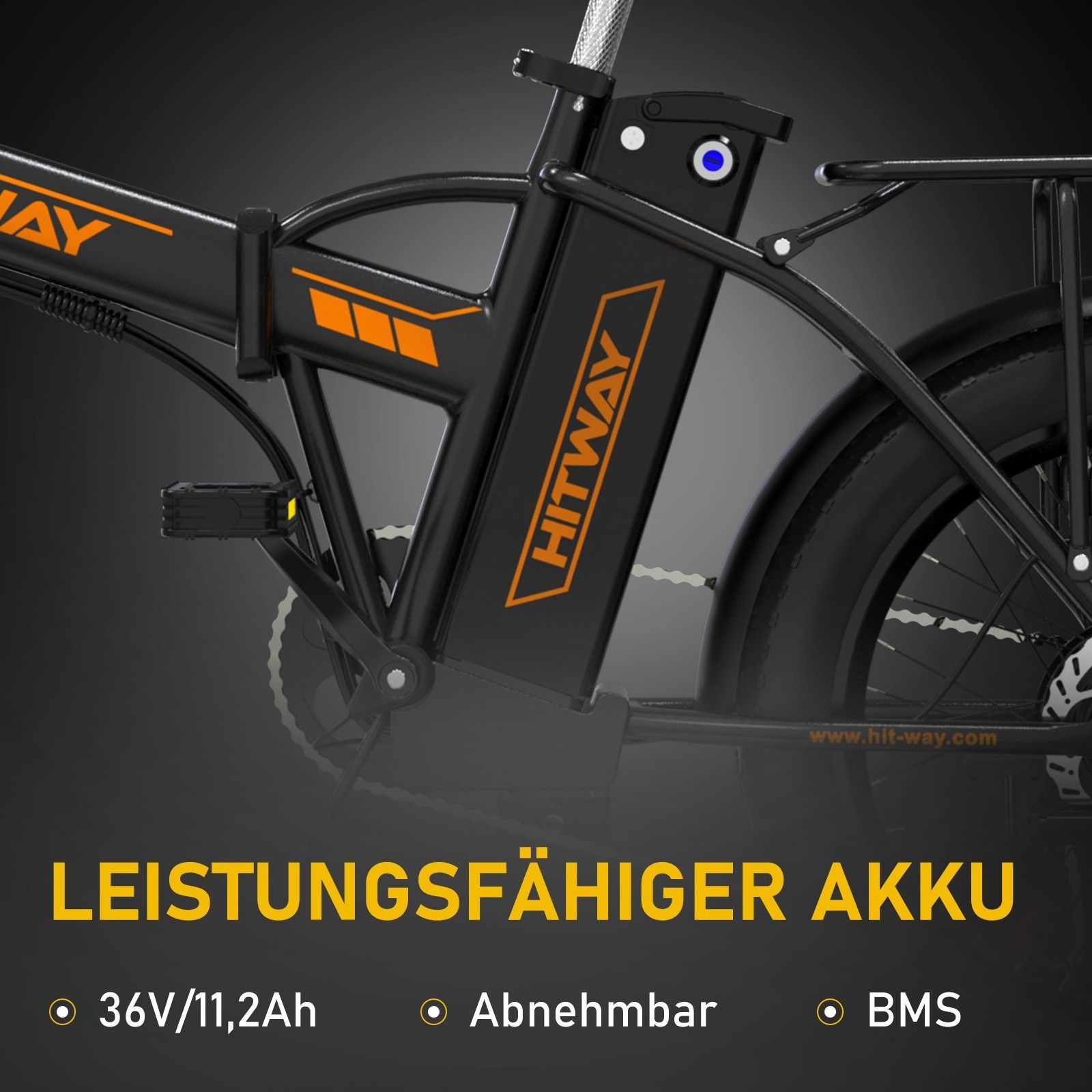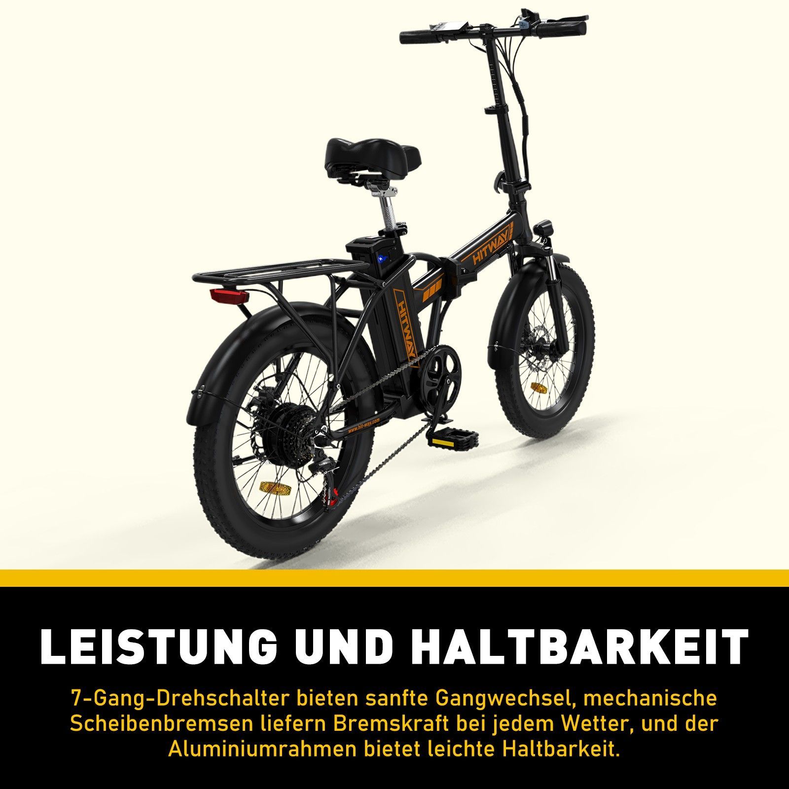 HITWAY Elektrofahrrad, 20" * 3,0 faltbares elektrisches Fatbike MTB