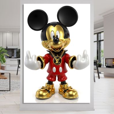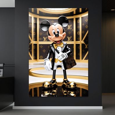 • Luxusmodemarke LV, Goldene Micky Maus, Wandbild Kunst Bild, Leinwand, Acrylglas Art B
